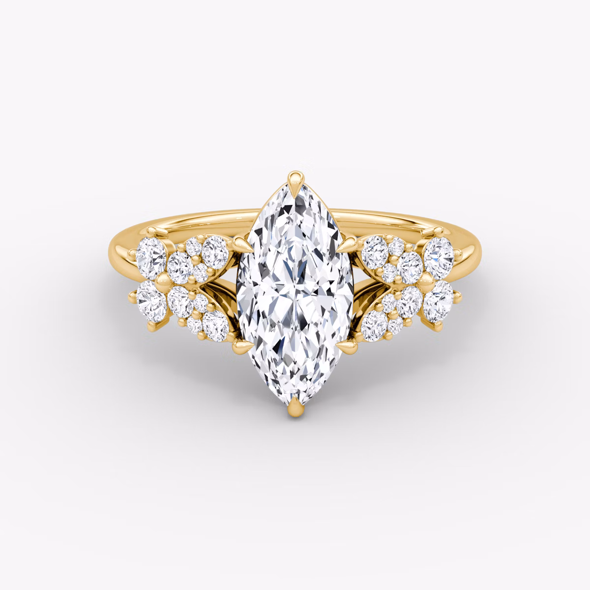 The Signature Floral solitaire in 18k yellow gold with a marquise diamond