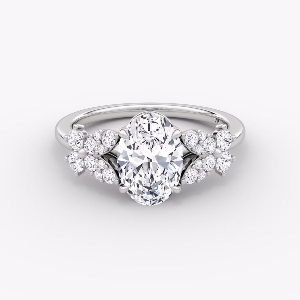 The Signature Floral solitaire in 18k white gold with a oval diamond