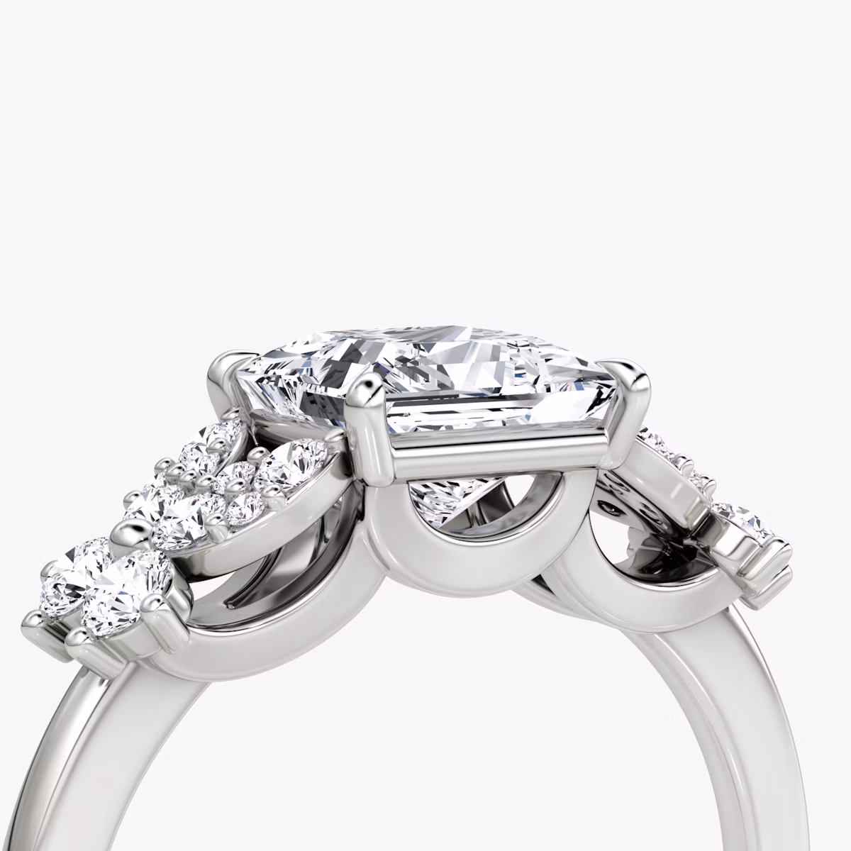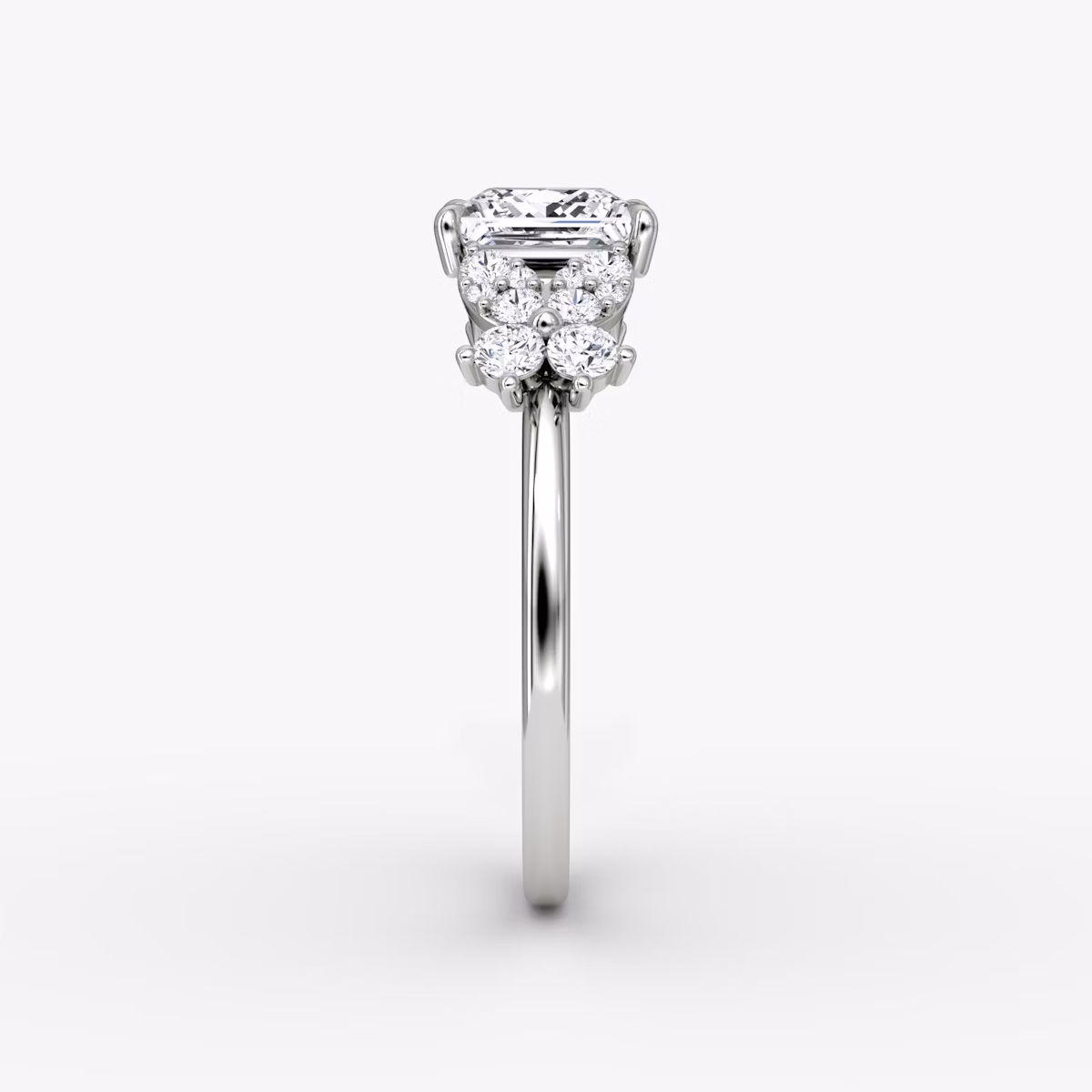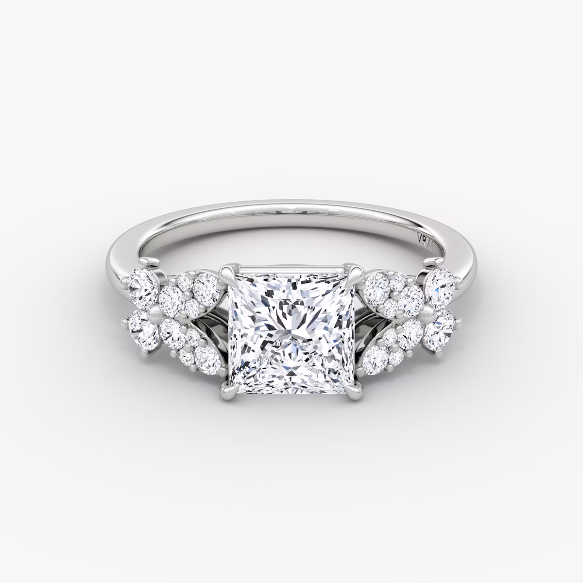 The Signature Floral solitaire in 18k white gold with a princess diamond