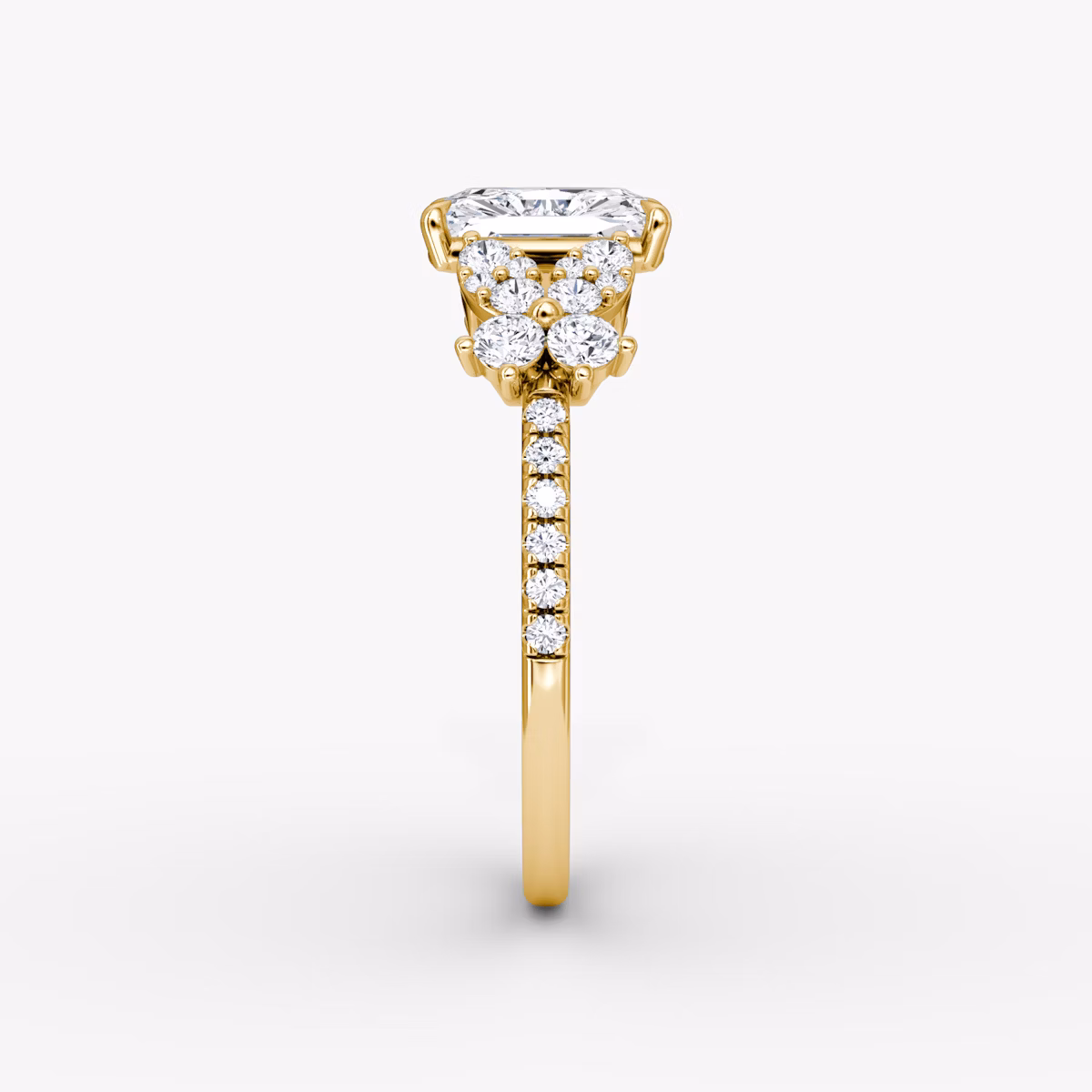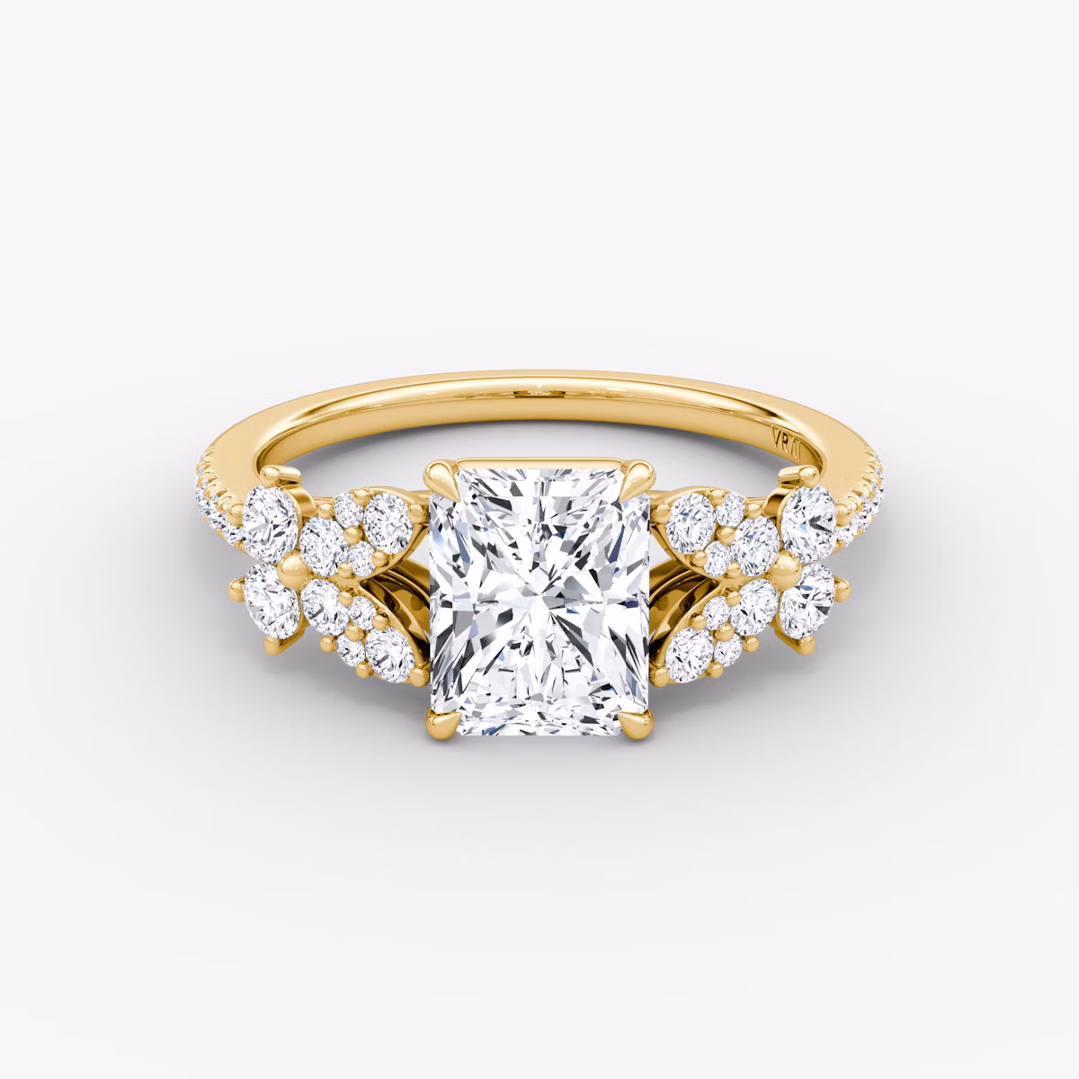 The Signature Floral solitaire in 18k yellow gold with a radiant diamond