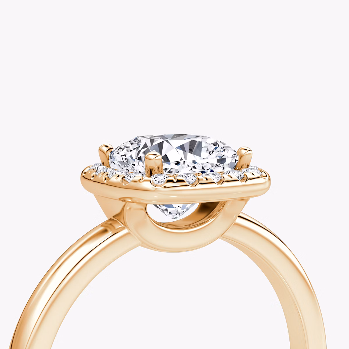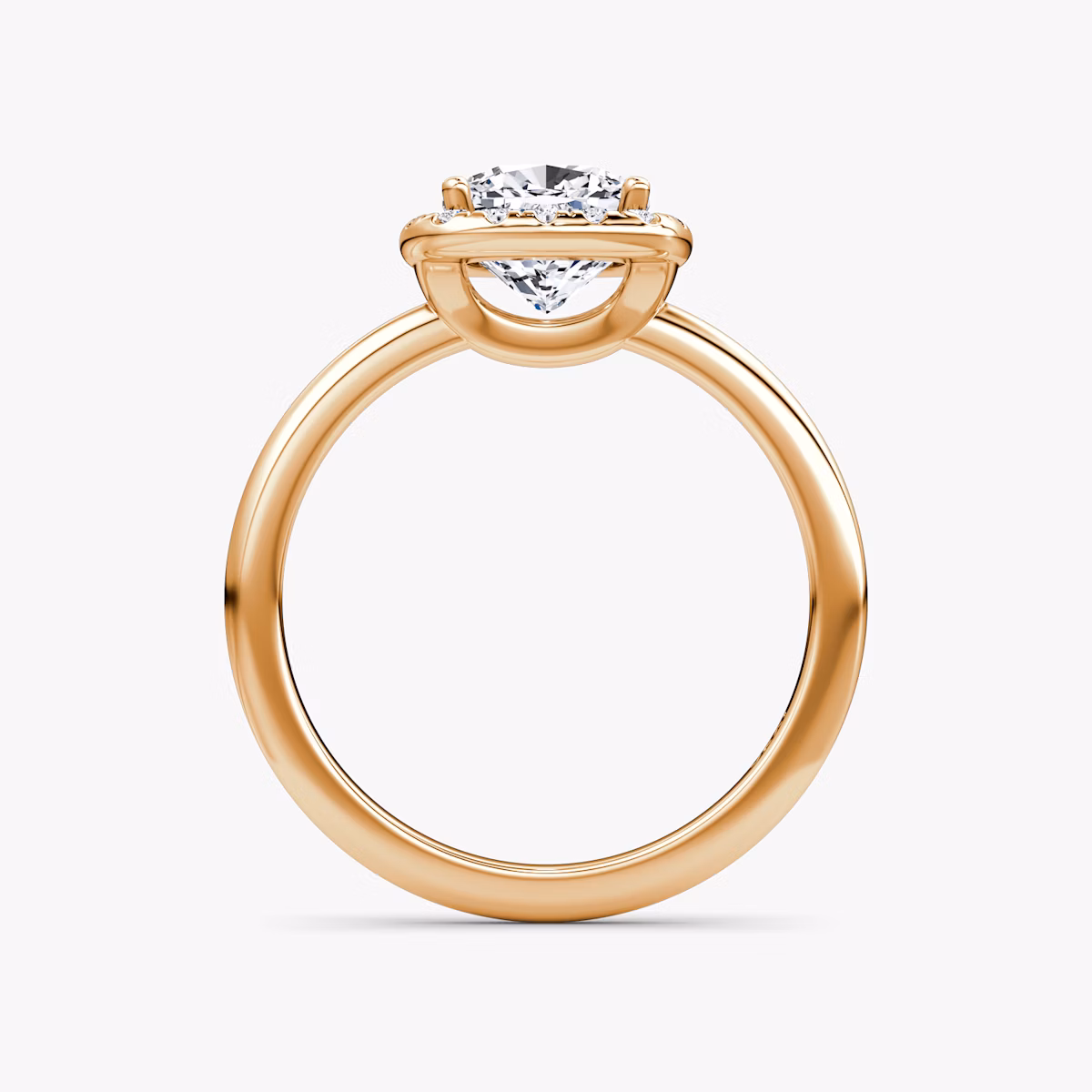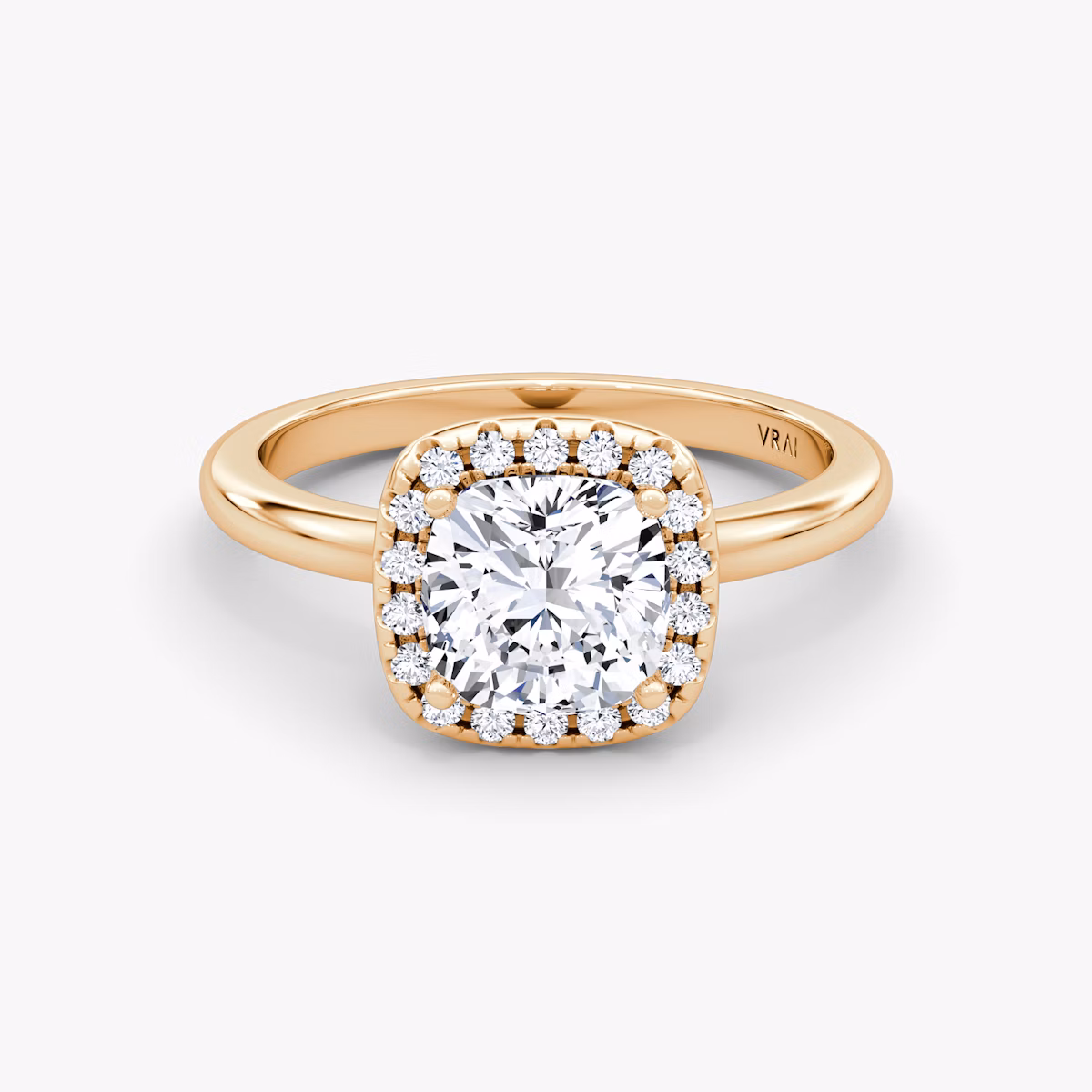 The Halo ring in 14k rose gold with a cushion diamond