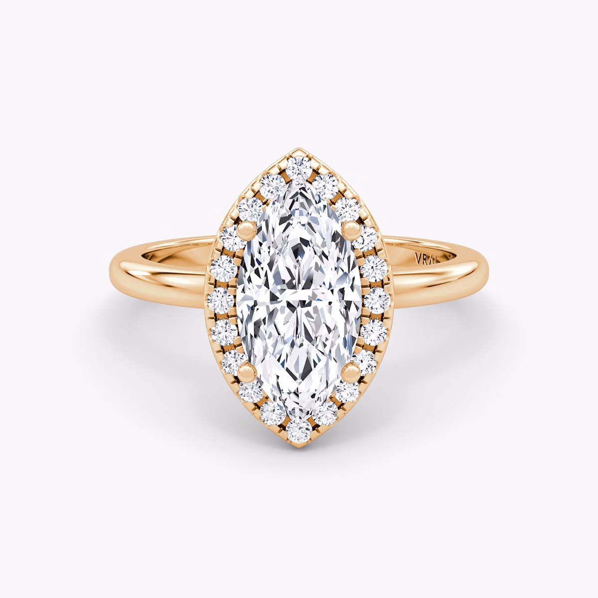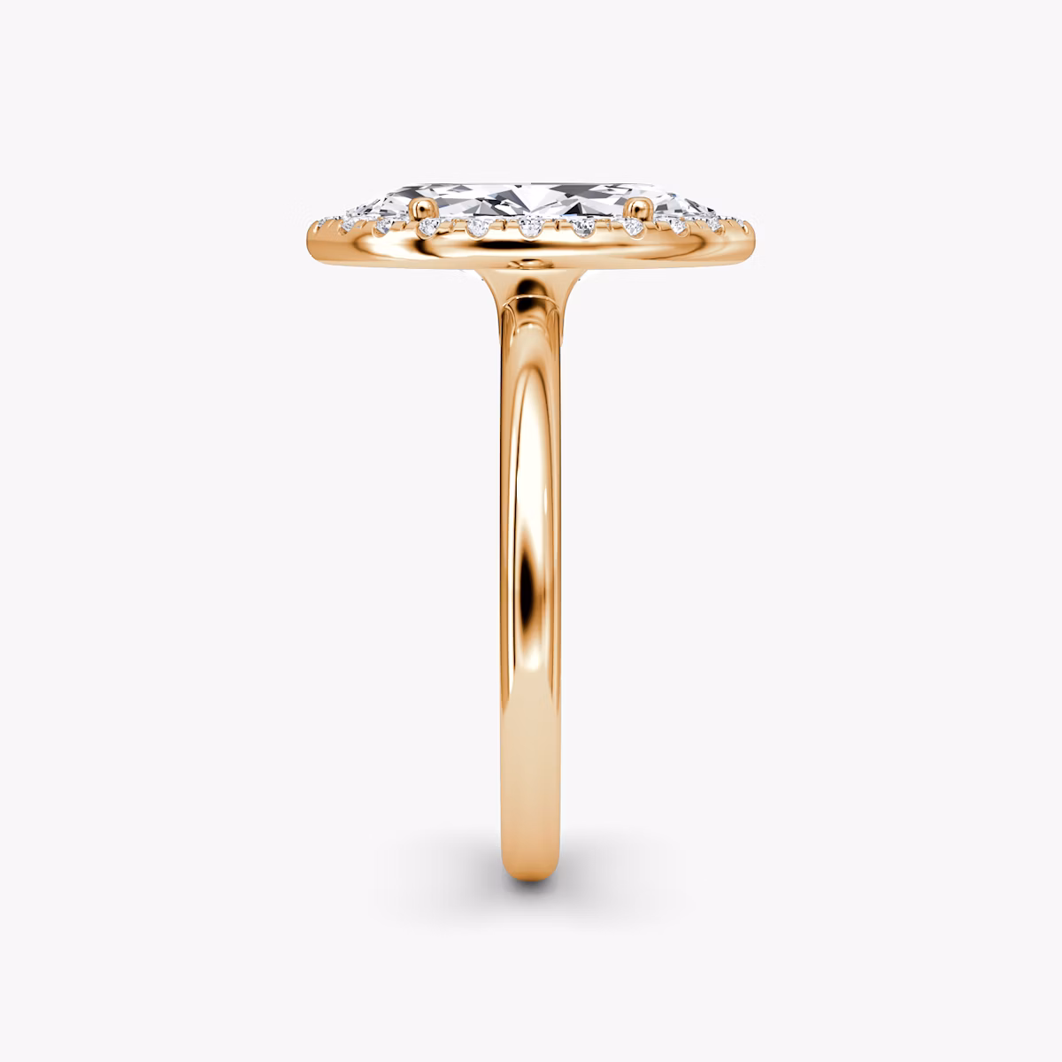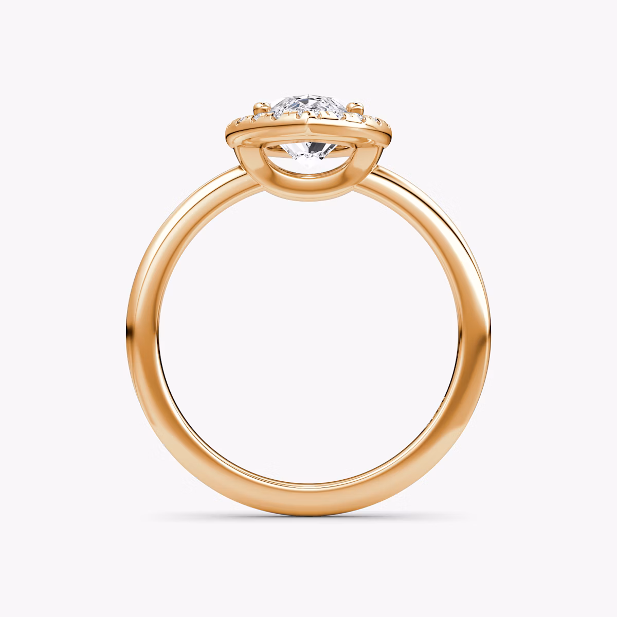 The Halo engagement ring is our rendition of a classically romantic setting. A radiant series of individually handset pavé VRAI created diamonds accent the brilliance of your center stone. Thoughtfully designed to sit low on your finger and flush with your wedding band, our signature sling dips slightly below the band, drawing in light so your VRAI created diamond shines bright.