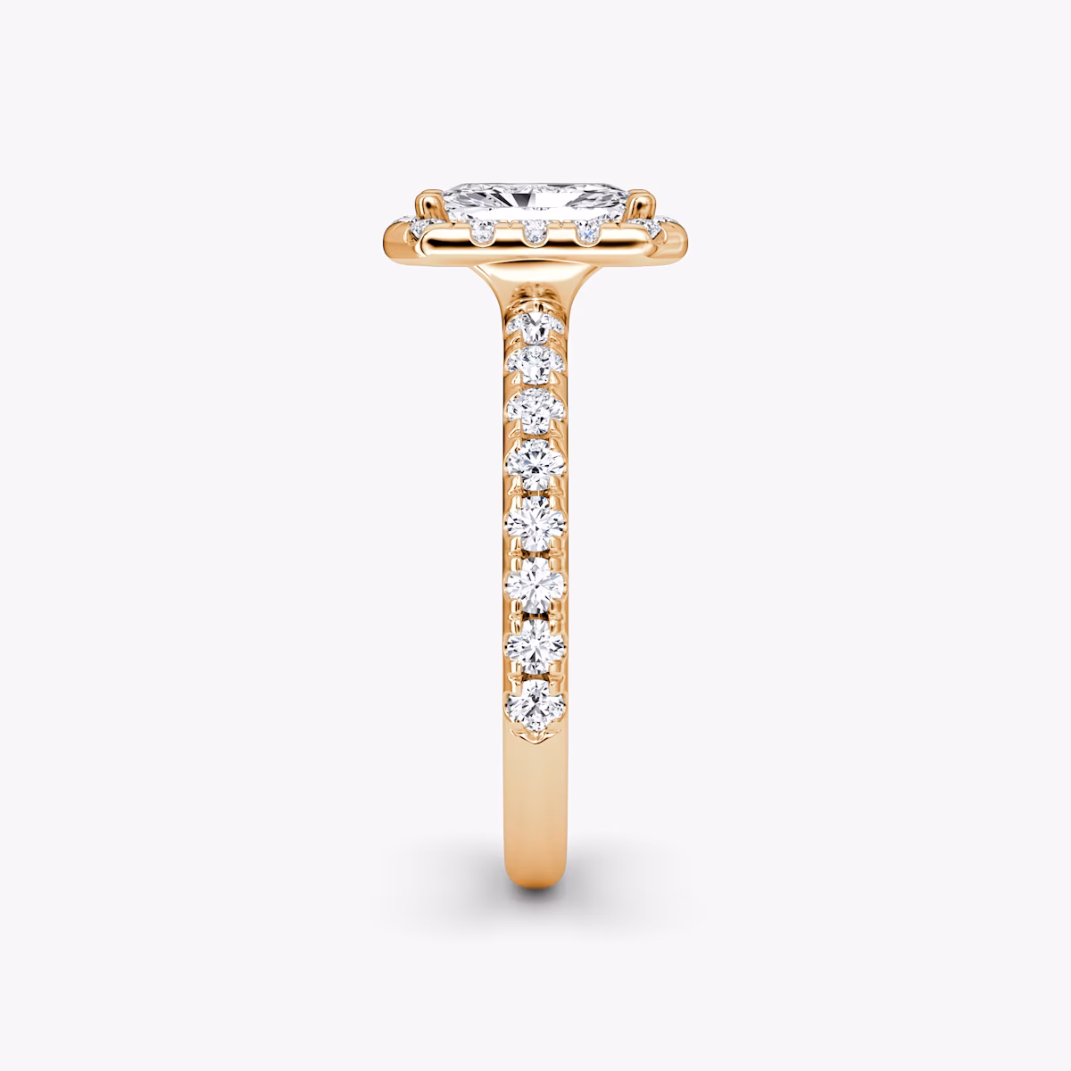 The Halo ring in 14k rose gold with a radiant diamond