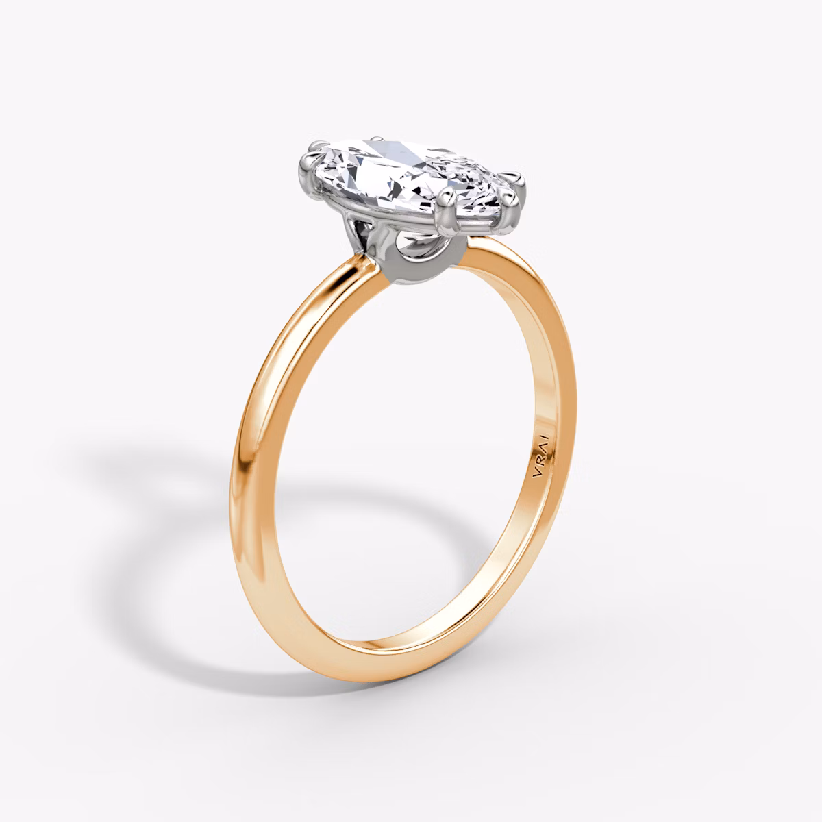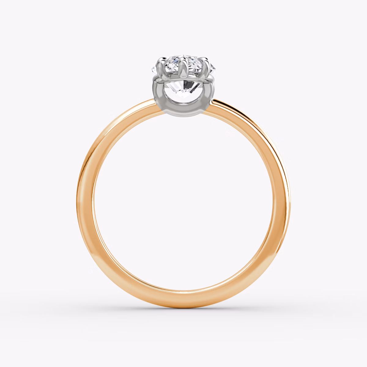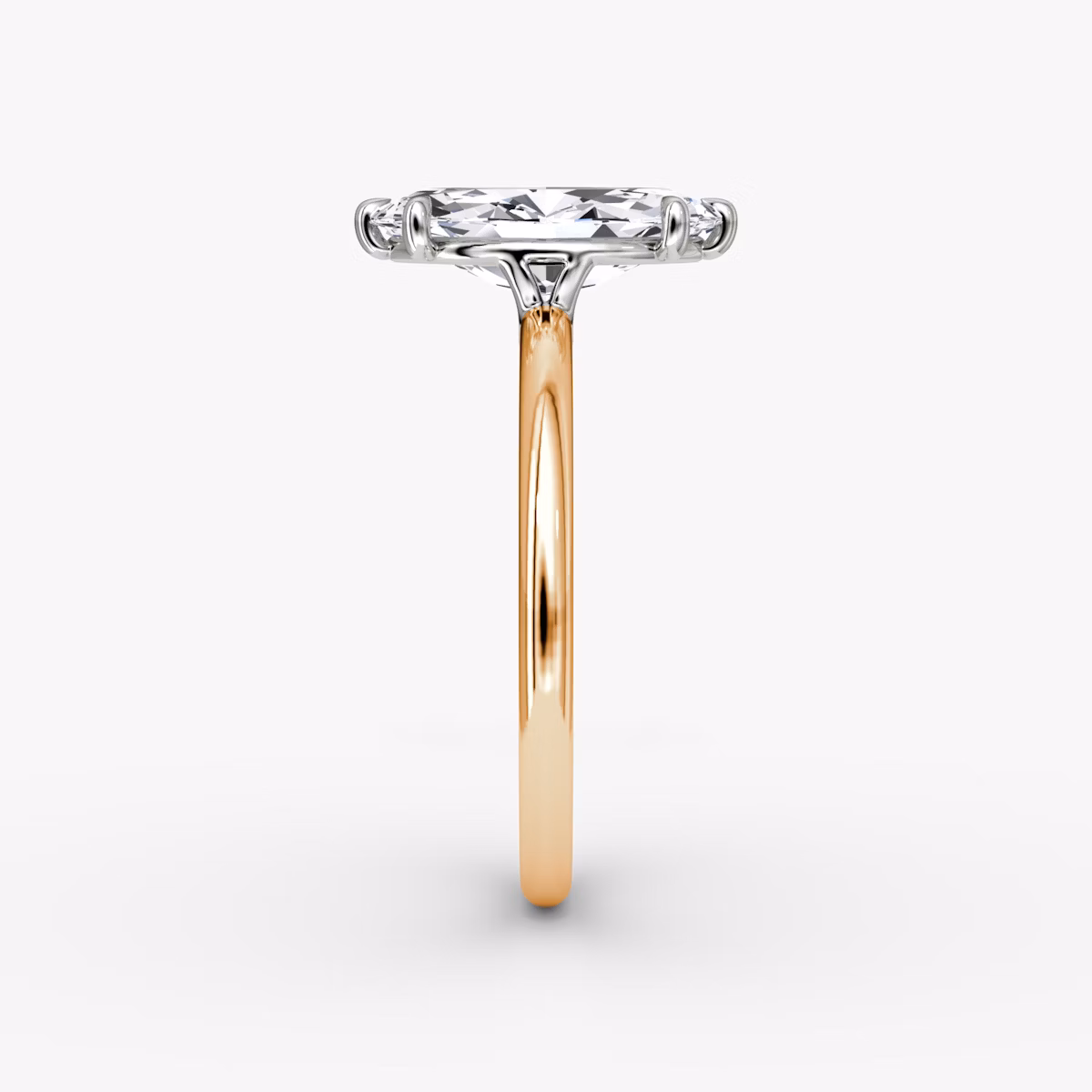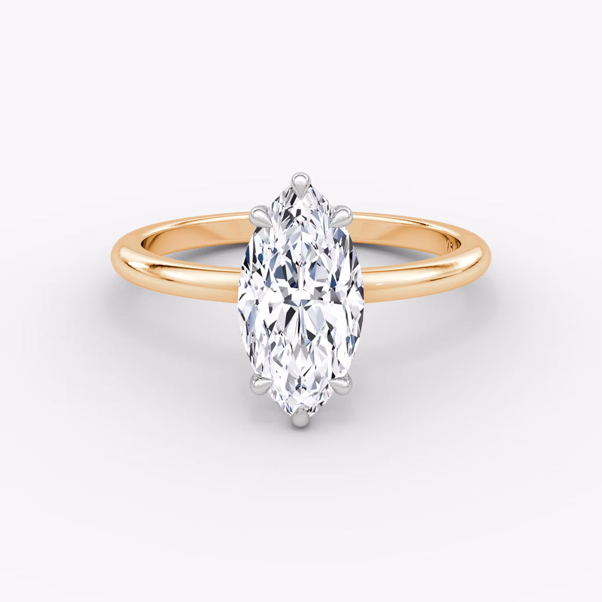 The Signature Two Tone ring in 14k rose gold and platinum with a marquise cut diamond and plain band