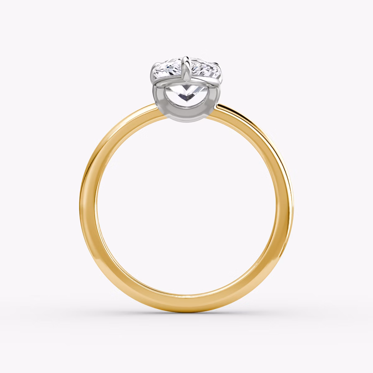 The Signature Two Tone ring in 18k yellow gold and platinum with a pear cut diamond and plain band