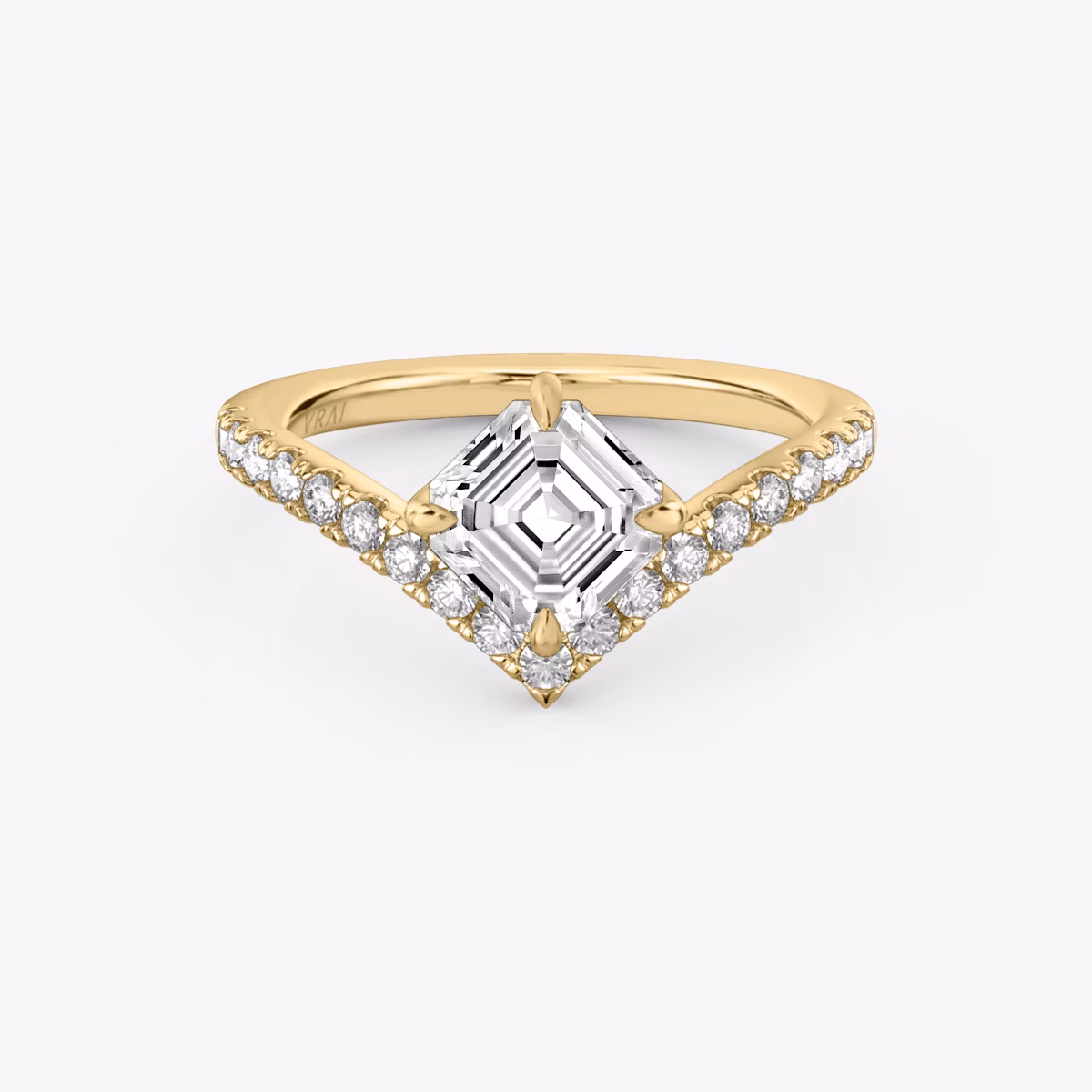 The Signature V solitaire in 18k yellow gold with a asscher diamond