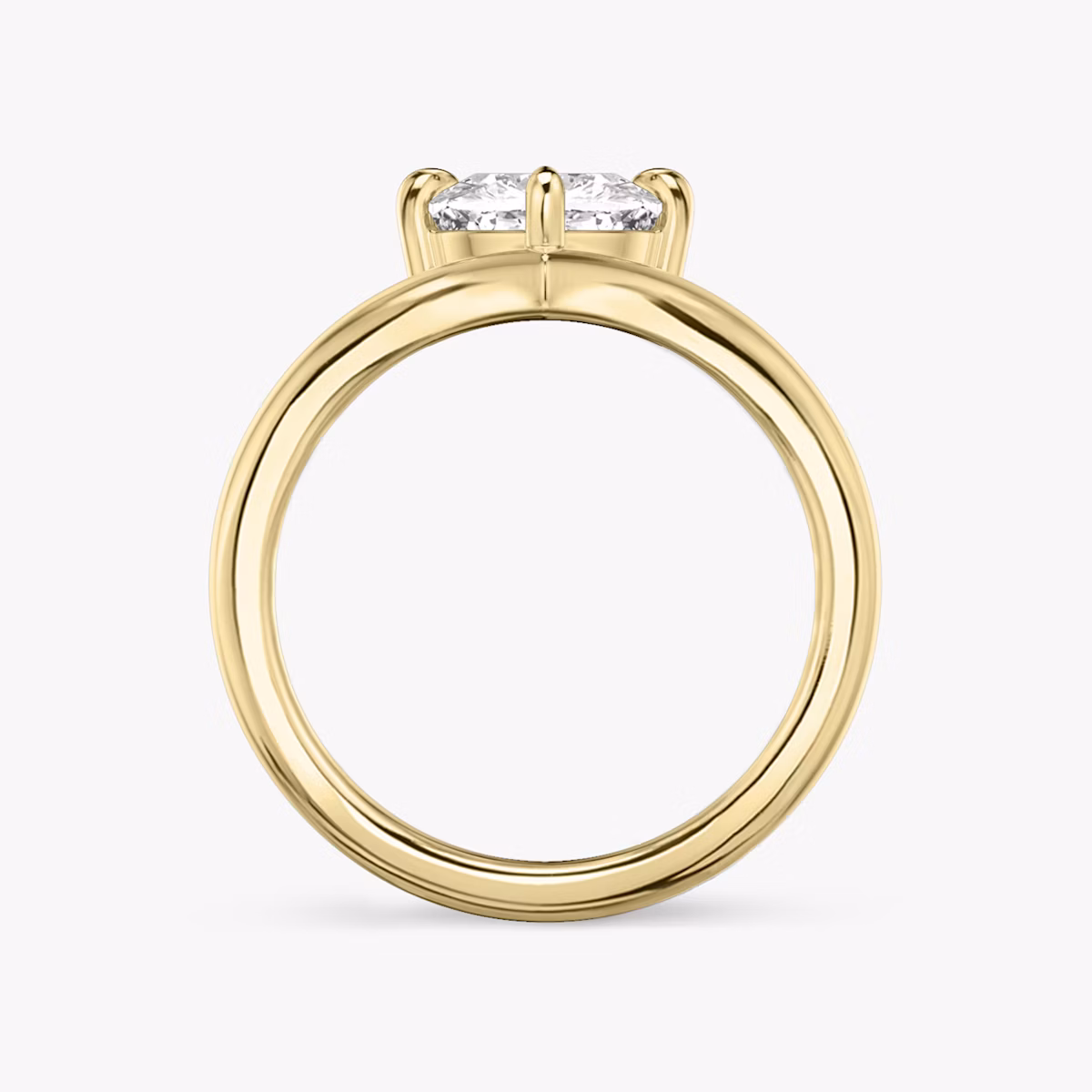 The Signature V solitaire in 18k yellow gold with a cushion diamond