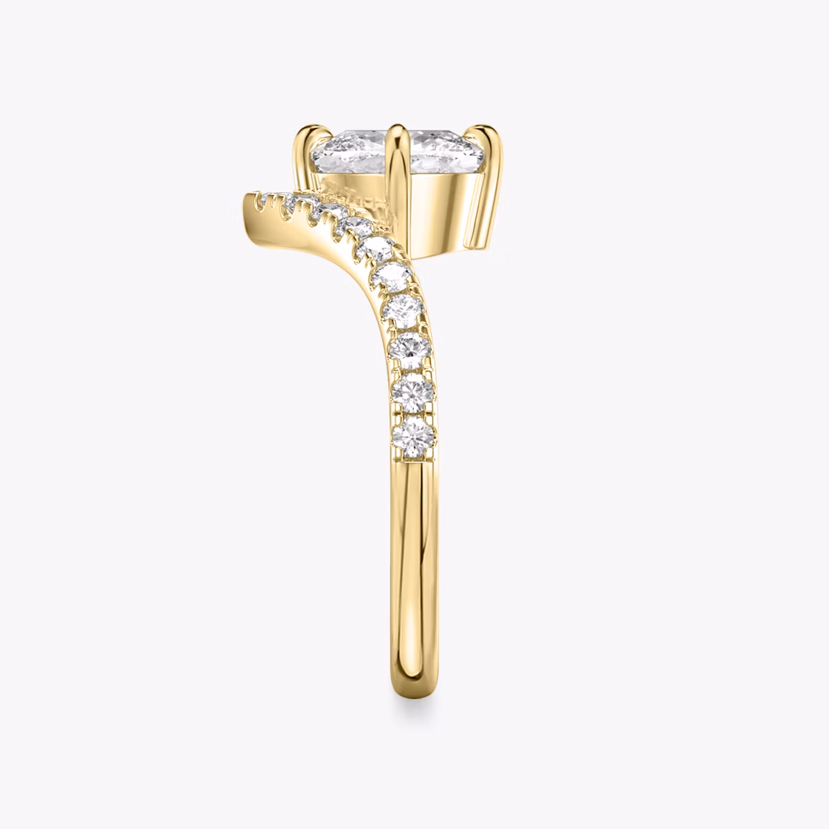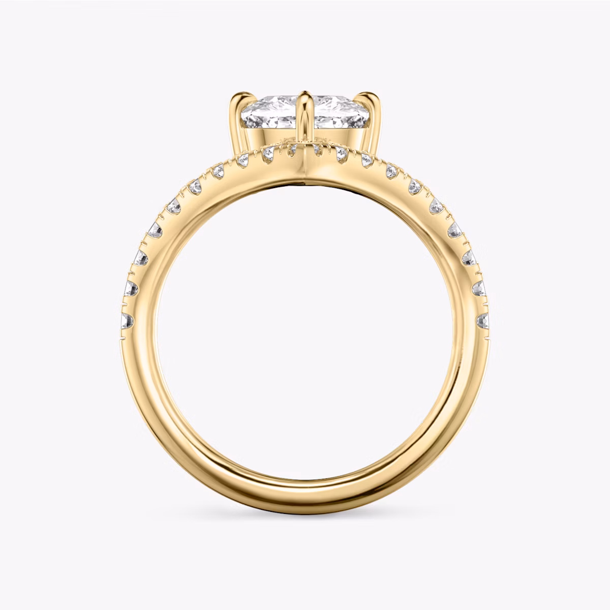 The Signature V solitaire in 18k yellow gold with a cushion diamond