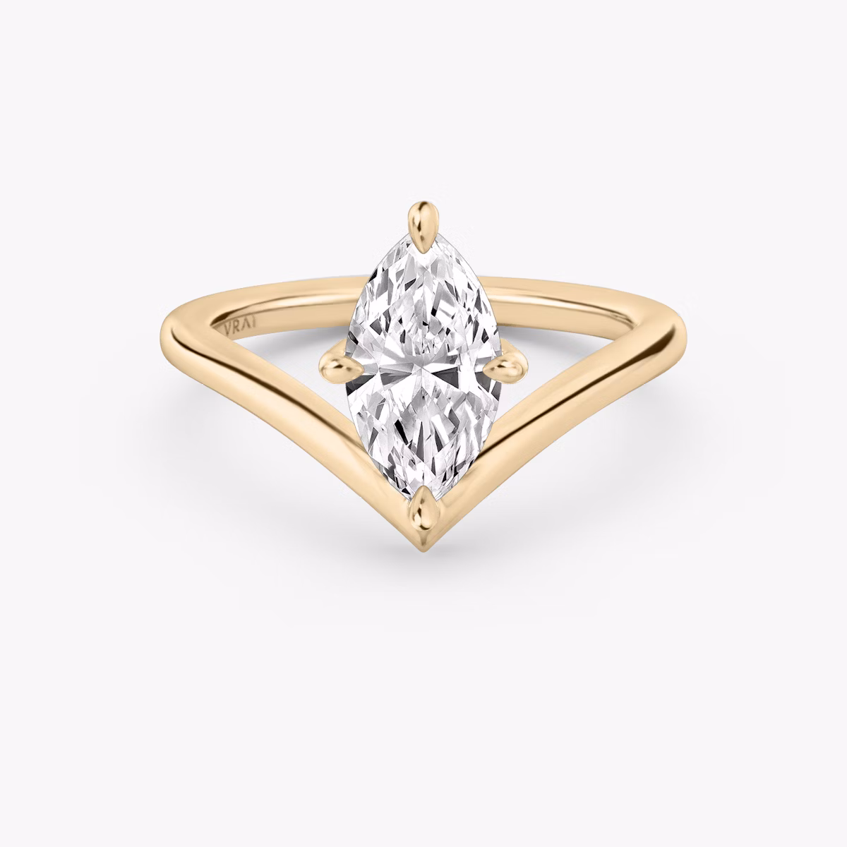 The Signature V solitaire in 14k rose gold with a marquise diamond