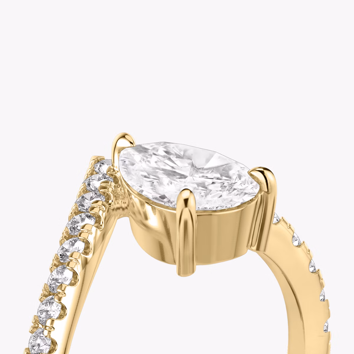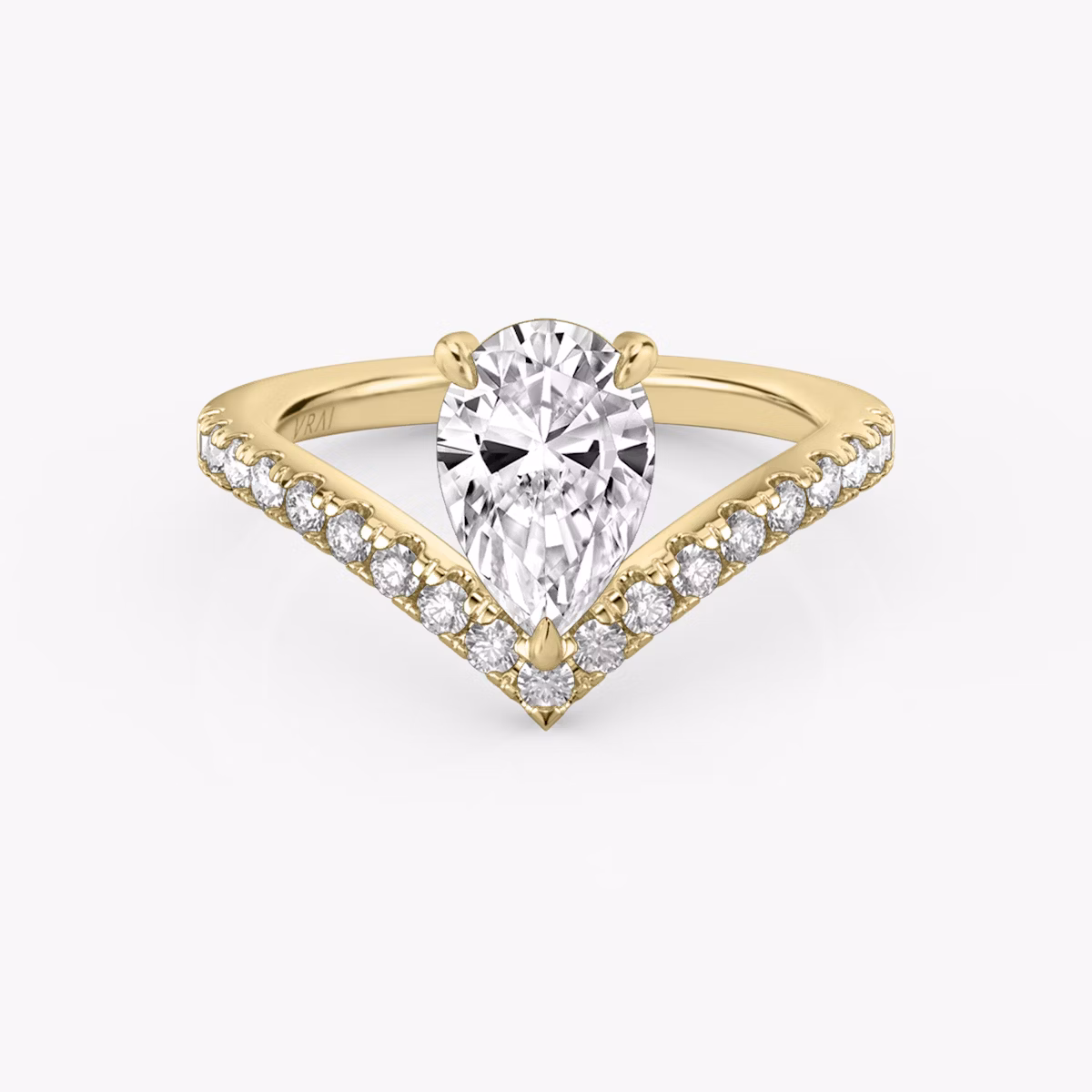 The Signature V solitaire in 18k yellow gold with a pear diamond