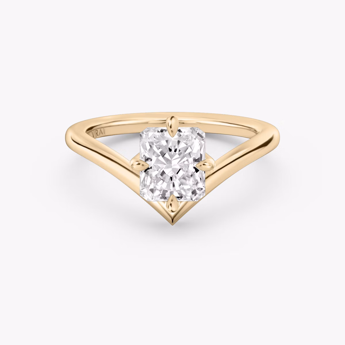 The Signature V solitaire in 14k rose gold with a radiant diamond