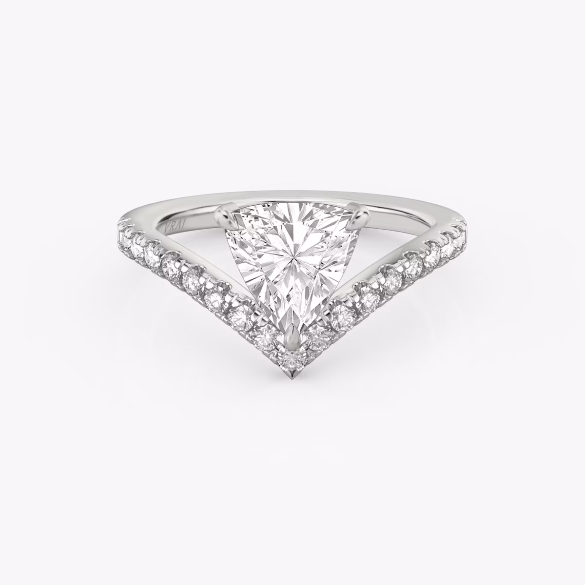 A future classic, the Signature V engagement ring is at once timeless yet untraditional. Contoured cusps nestle a VRAI created diamond between the band’s dipping center for a unique adaptation of the classic solitaire engagement ring. Elegant in its craftsmanship, this design can be worn with the V facing either direction.