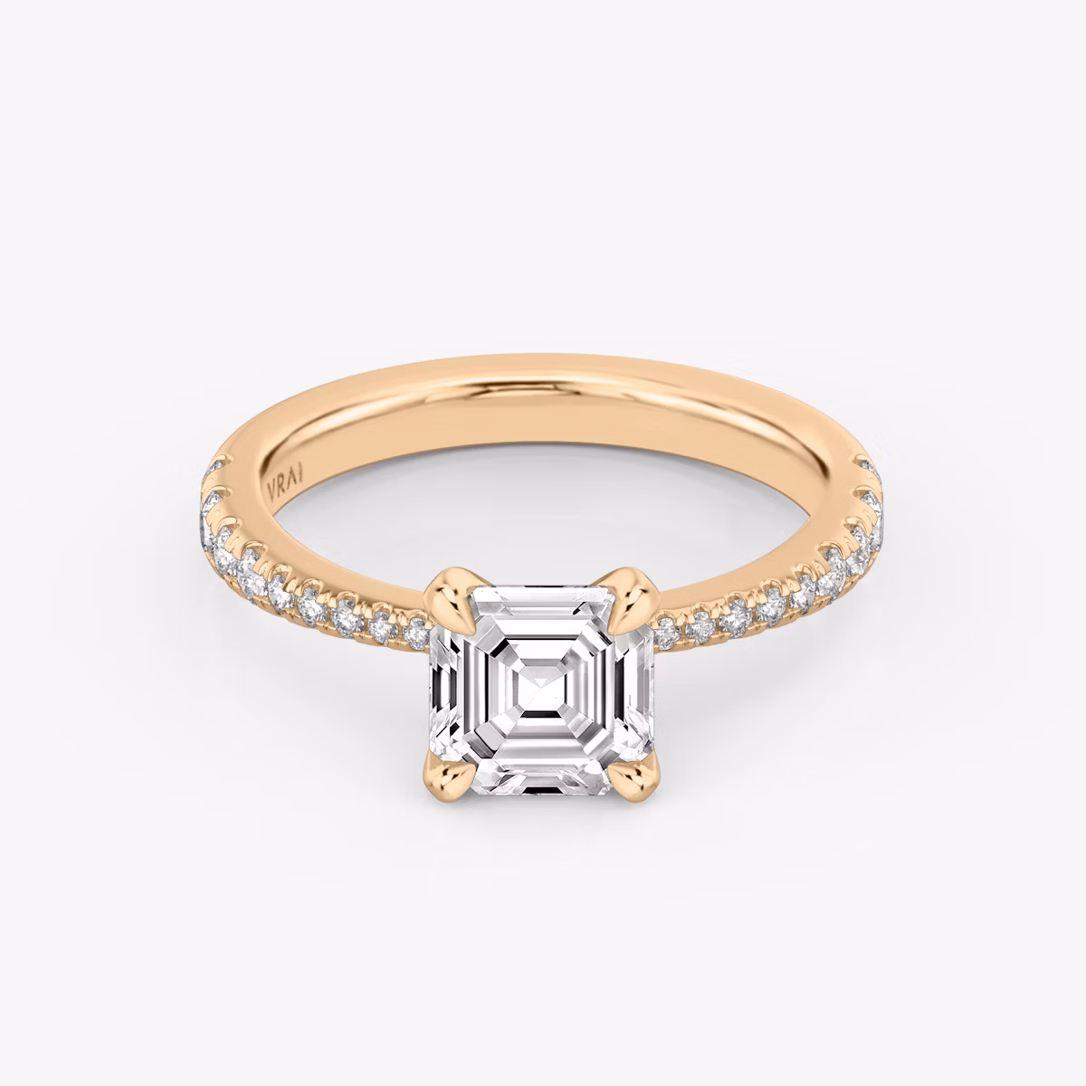 The Tapered Classic solitaire in 14k rose gold with a asscher diamond