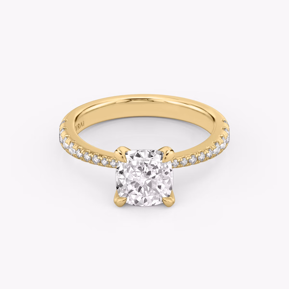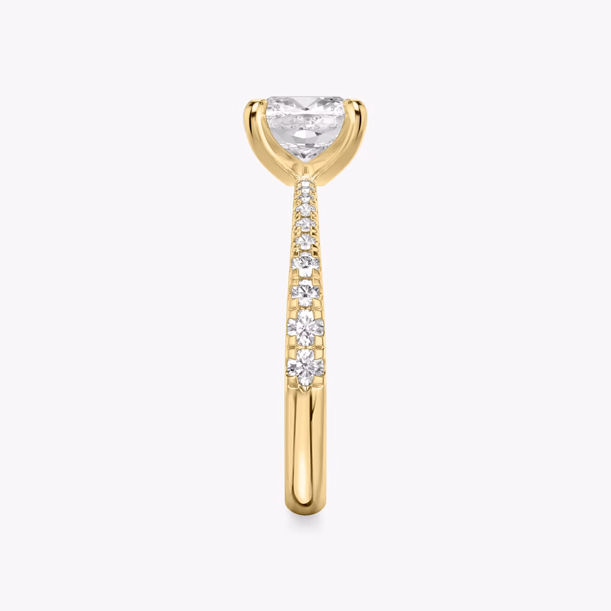 The Tapered Classic solitaire in 18k yellow gold with a cushion diamond
