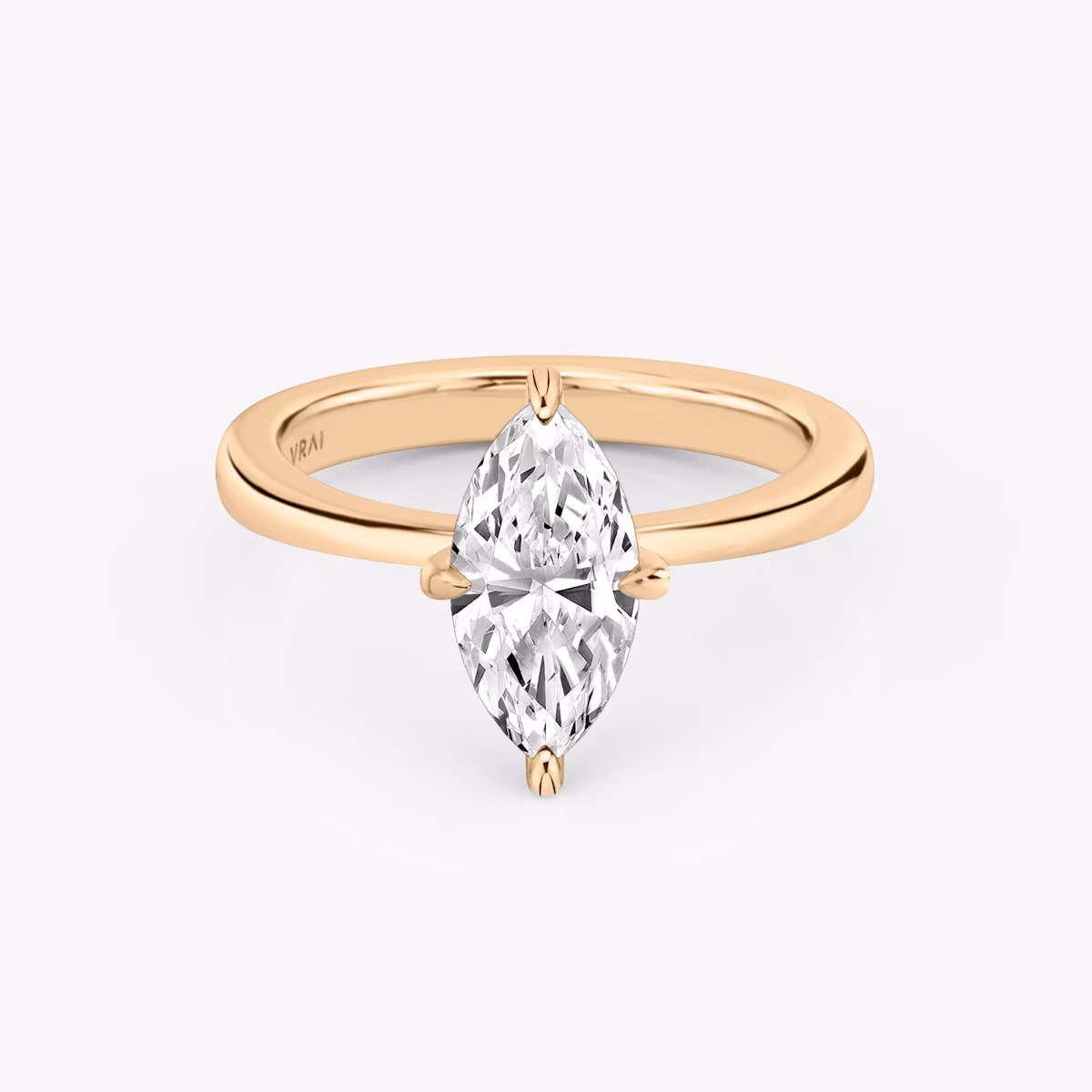 The Tapered Classic solitaire in 14k rose gold with a marquise diamond