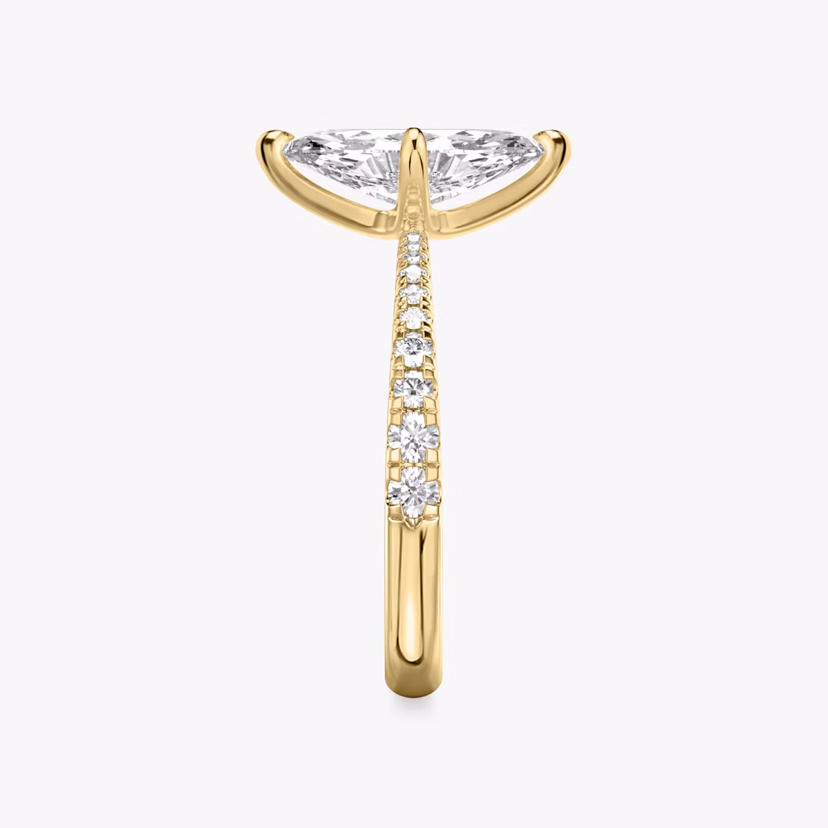 The Tapered Classic solitaire in 18k yellow gold with a marquise diamond