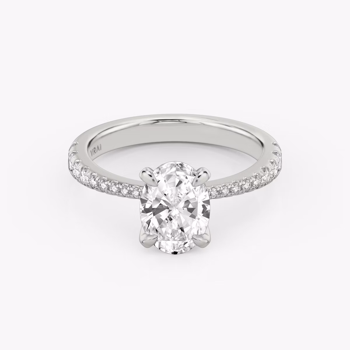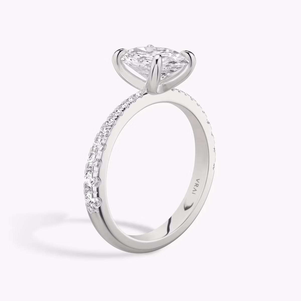 Modern meets vintage-inspired in this twist on our Classic engagement ring setting. The platinum or solid gold setting is tapered at the head, creating clean lines that draw attention to the solitaire VRAI created diamond. Four curved prongs solely caress the center stone, allowing light to enter from all directions for maximum brilliance.