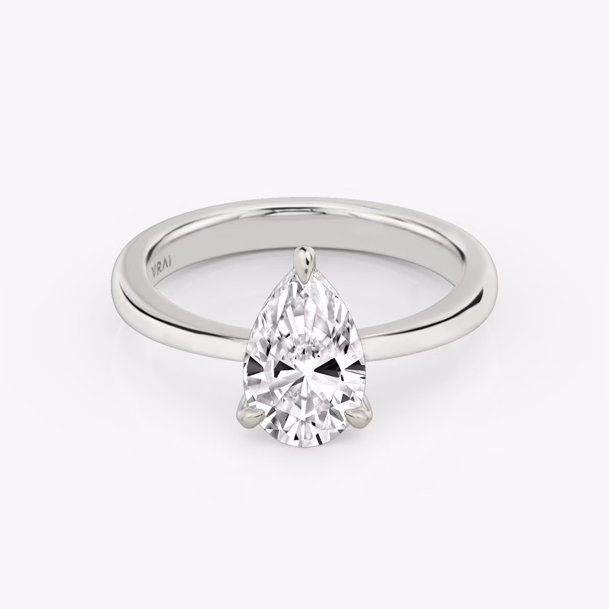 The Tapered Classic solitaire in 18k white gold with a pear diamond