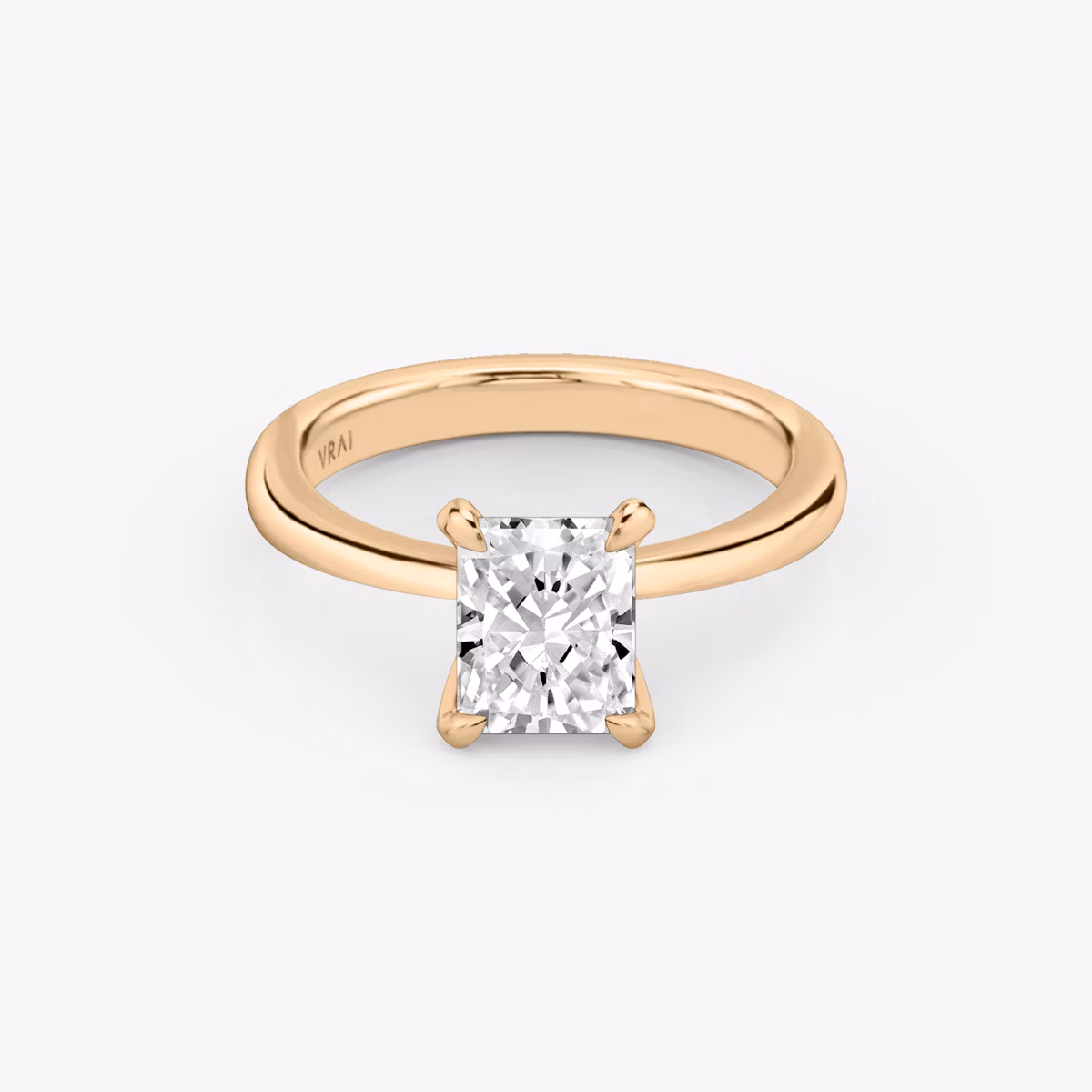 The Tapered Classic solitaire in 14k rose gold with a radiant diamond