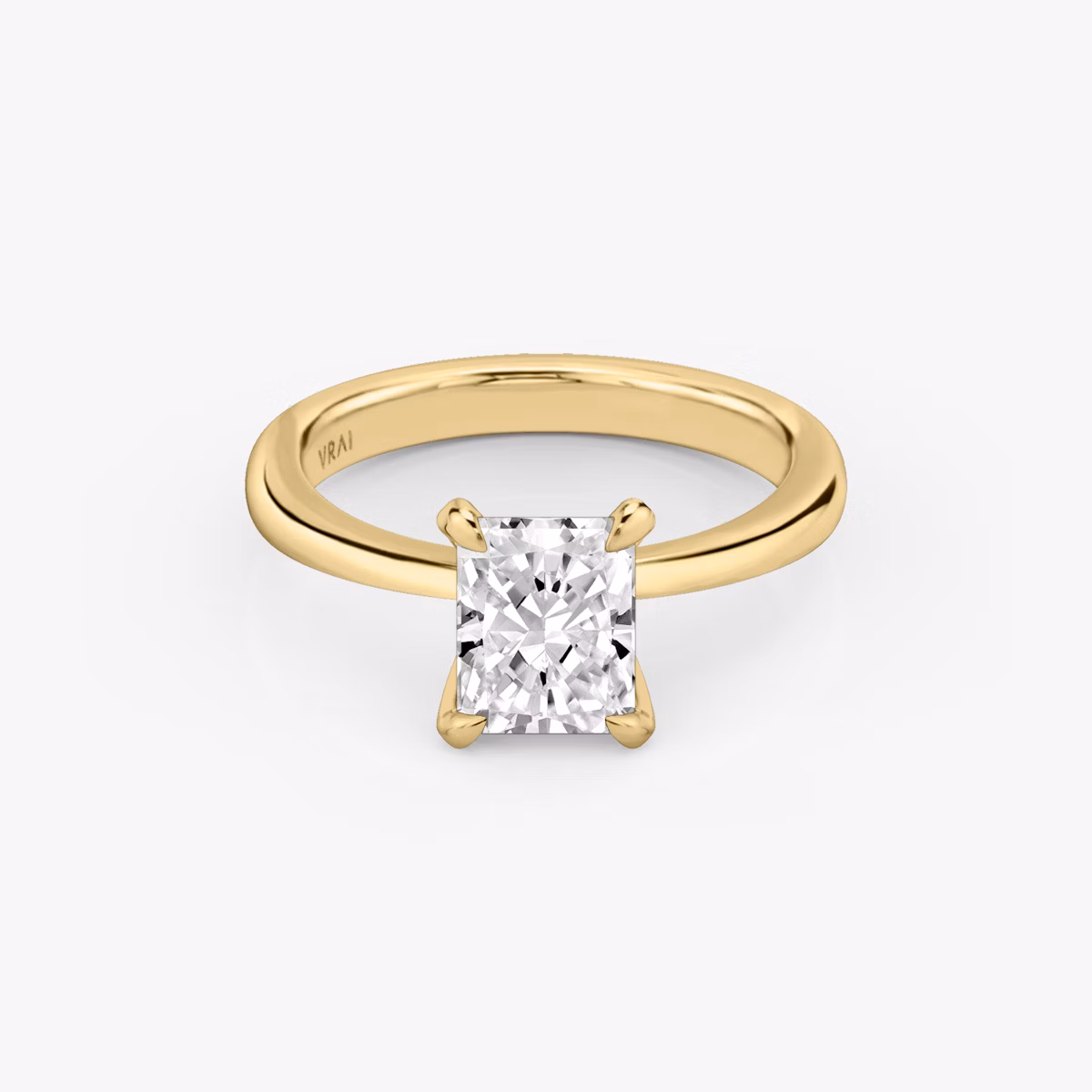 The Tapered Classic solitaire in 18k yellow gold with a radiant diamond