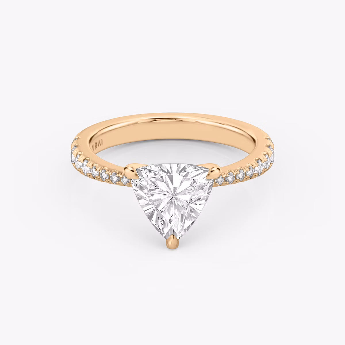 The Tapered Classic solitaire in 14k rose gold with a trillion diamond