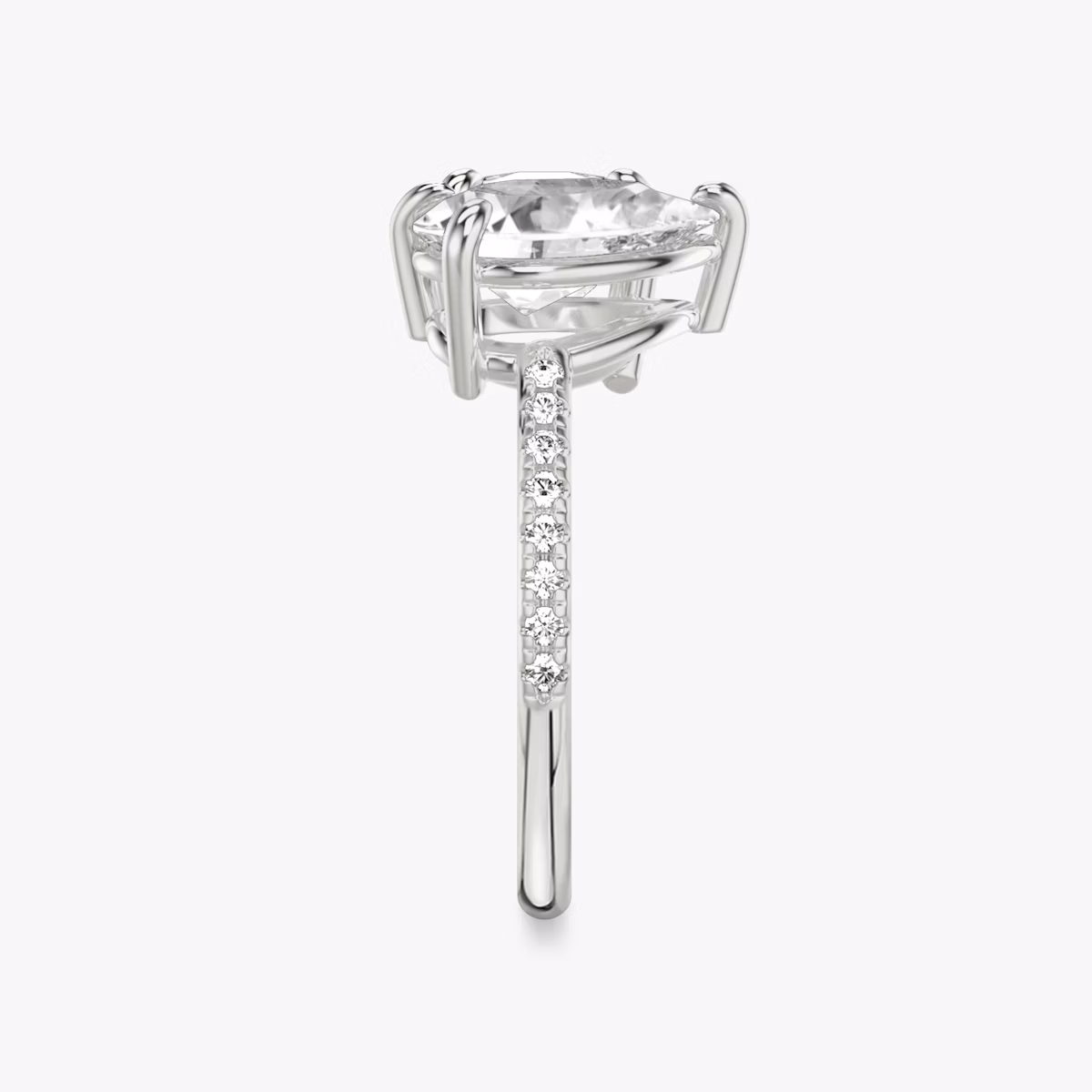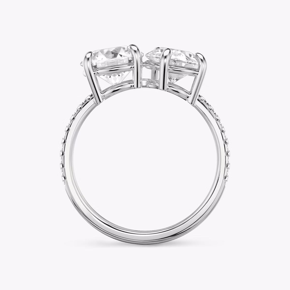 The Toi et Moi ring in platinum with round brilliant and pear cut diamonds and a pavé band