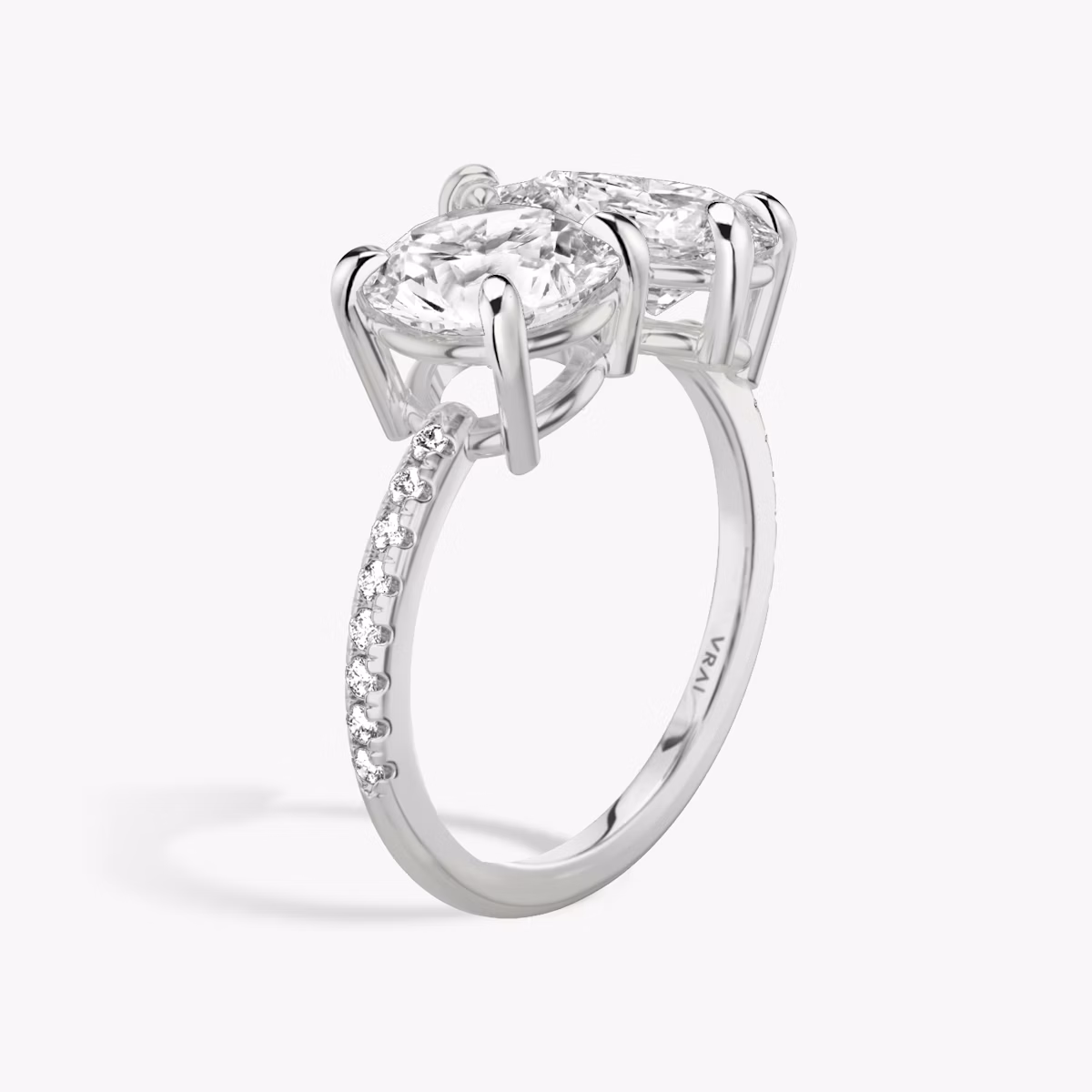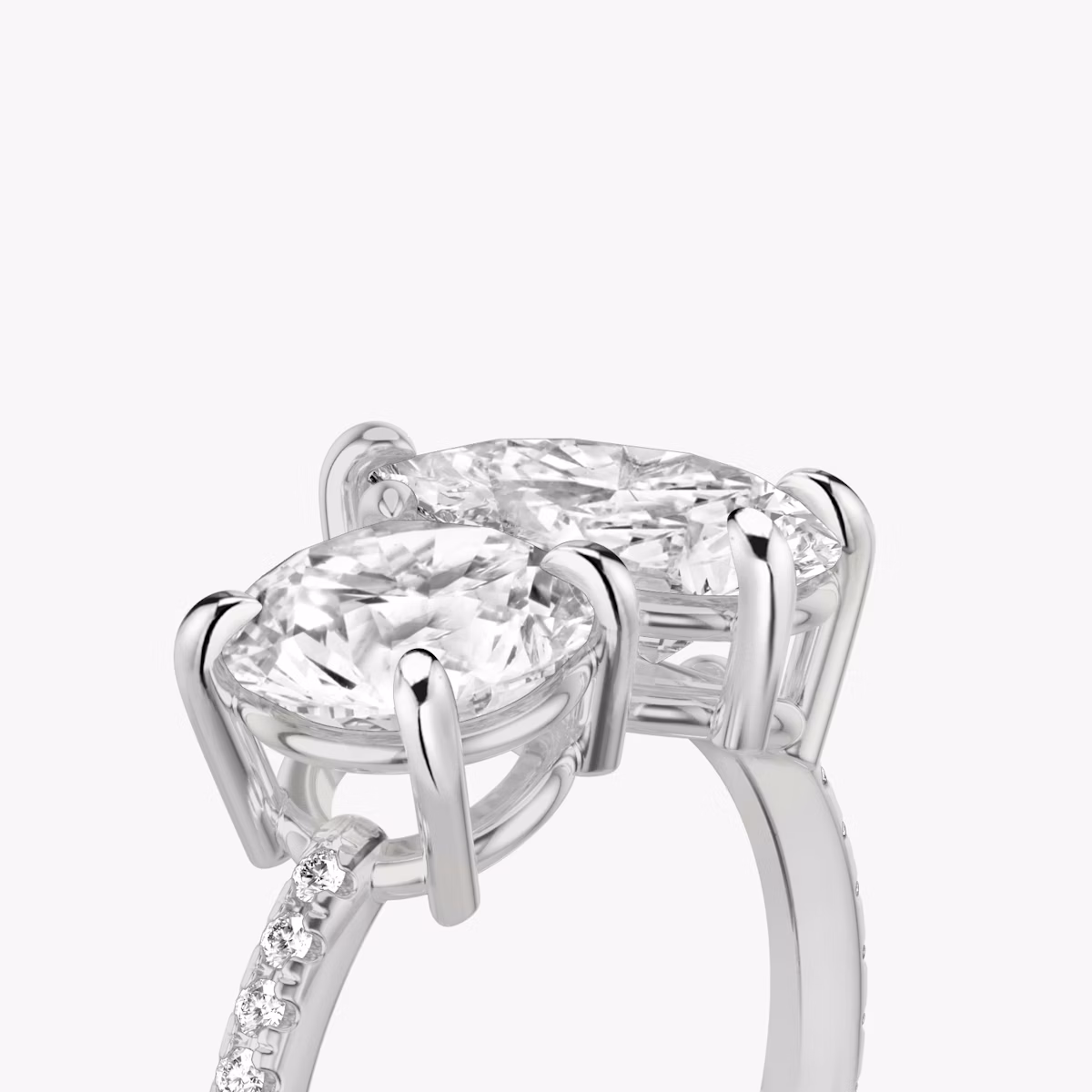 French for "you and me", the Toi et Moi Engagement Ring celebrates a perfect pairing of unique shapes. The two-stone design features a combination of Round Brilliant, Oval, Emerald, and Pear-shaped VRAI created diamonds in a platinum or solid gold prong setting that allows light to enter from all directions for maximum brilliance.
