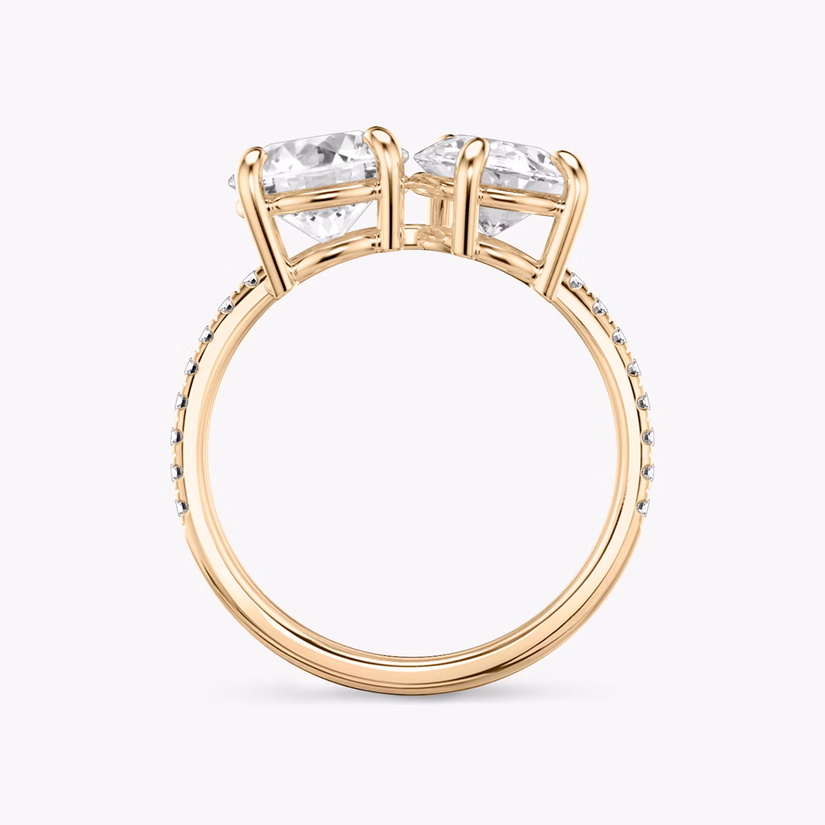 The Toi et Moi ring in rose gold with round brilliant and pear cut diamonds and a pavé band