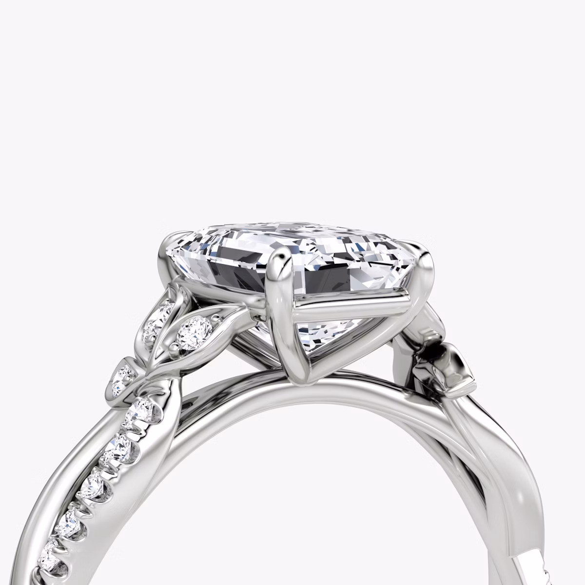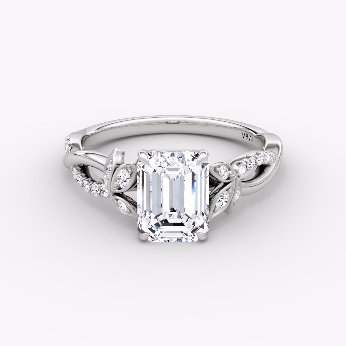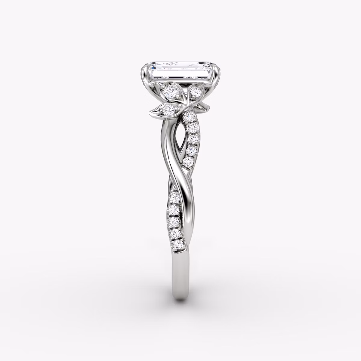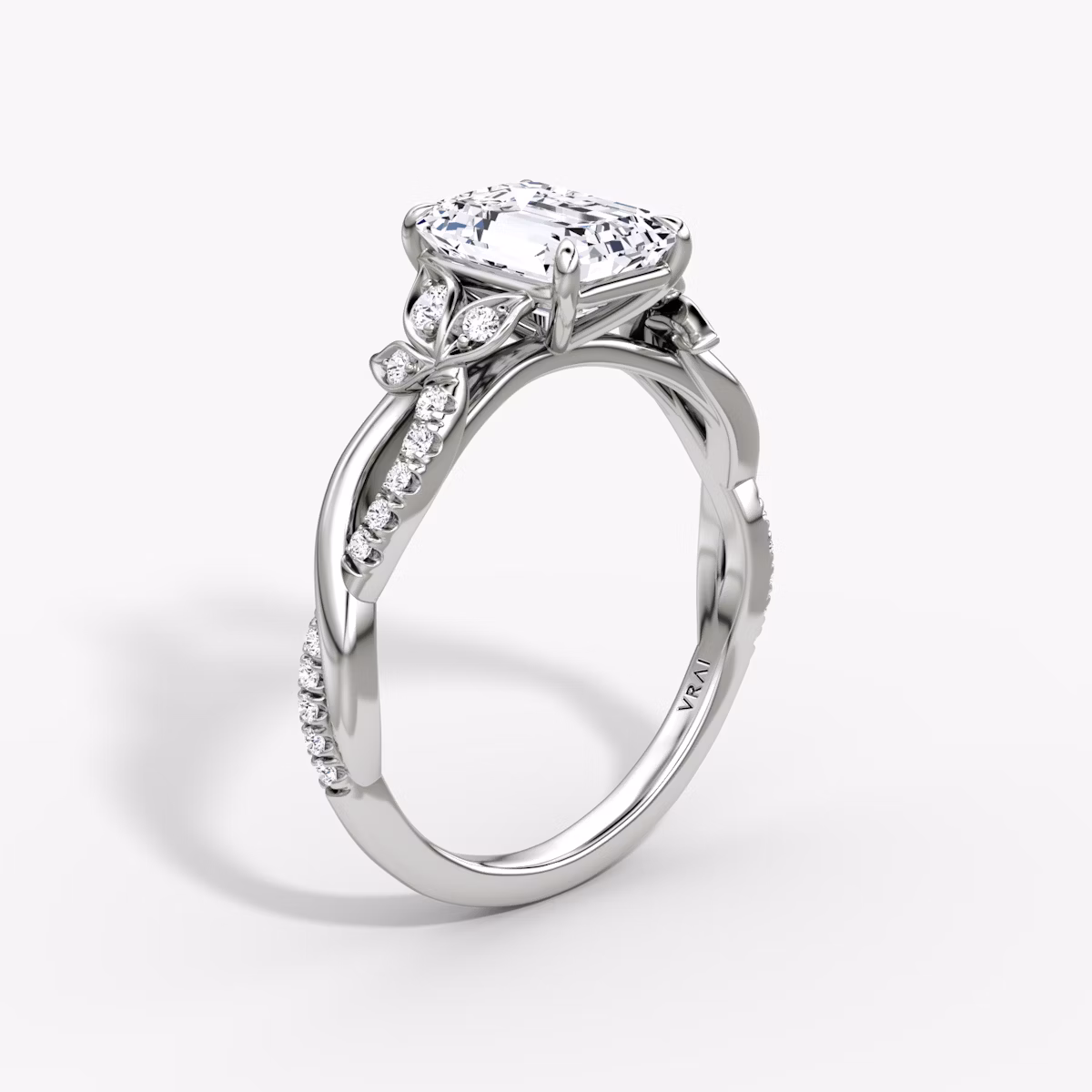 The Twisted Floral solitaire in 18k white gold with a emerald diamond