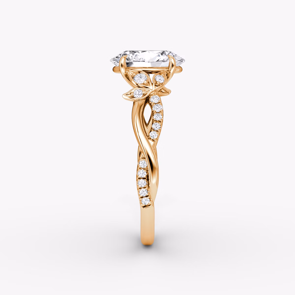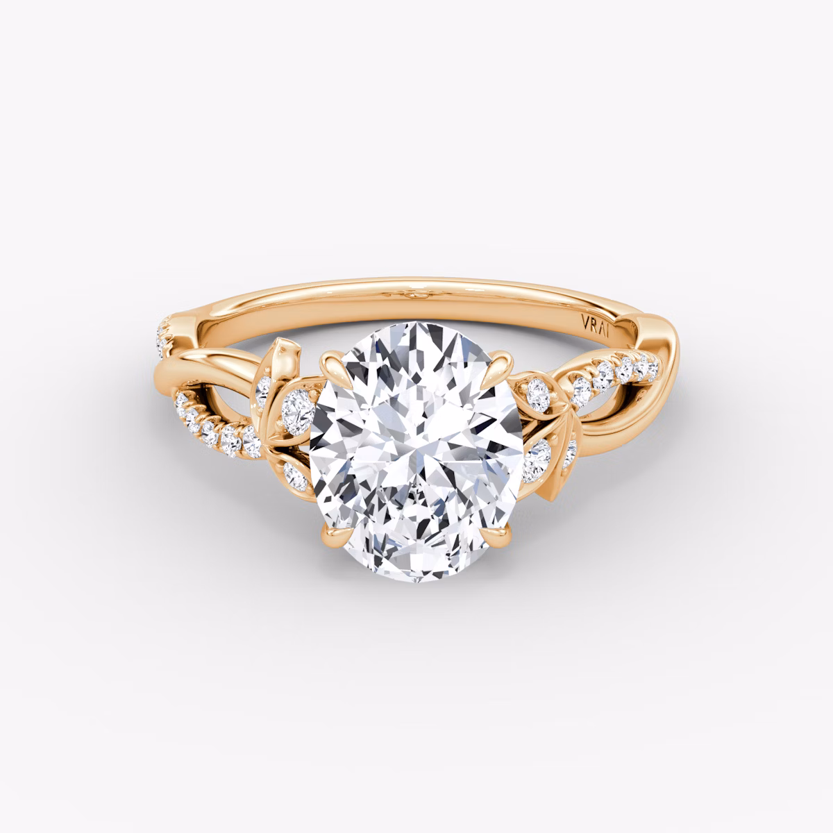 The Twisted Floral solitaire in 14k rose gold with a oval diamond