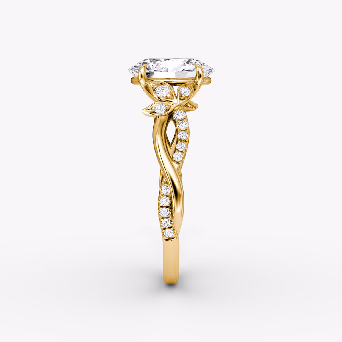 The Twisted Floral solitaire in 18k yellow gold with a oval diamond