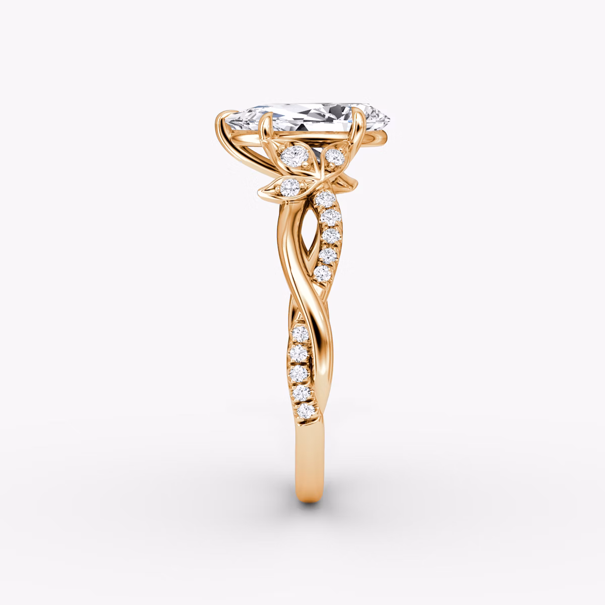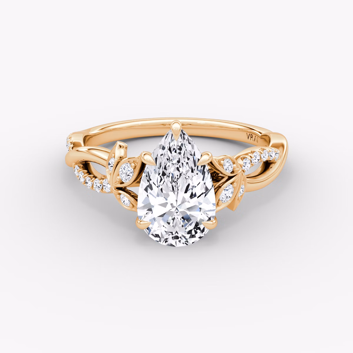 The Twisted Floral solitaire in 14k rose gold with a pear diamond