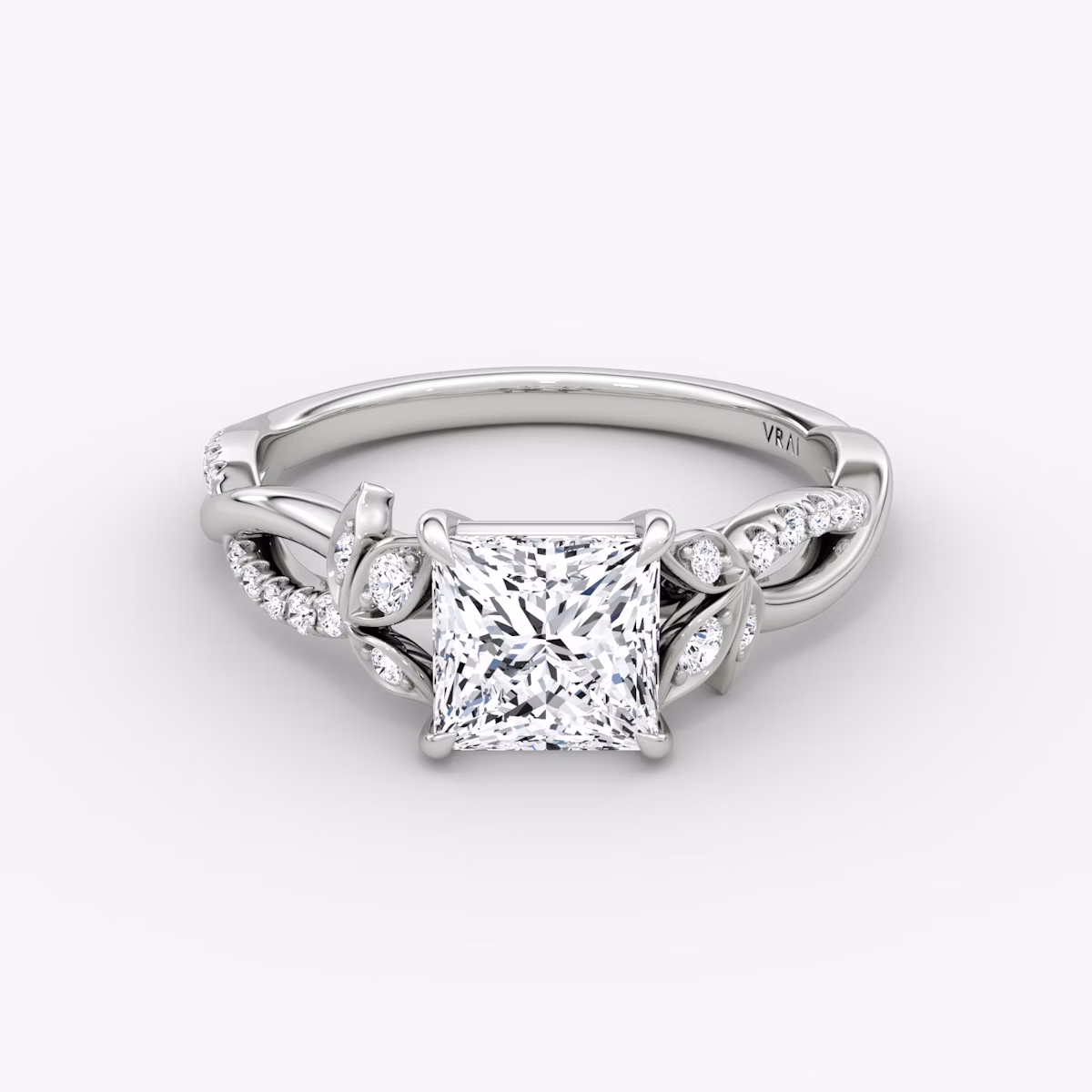 The Twisted Floral solitaire in 18k white gold with a princess diamond