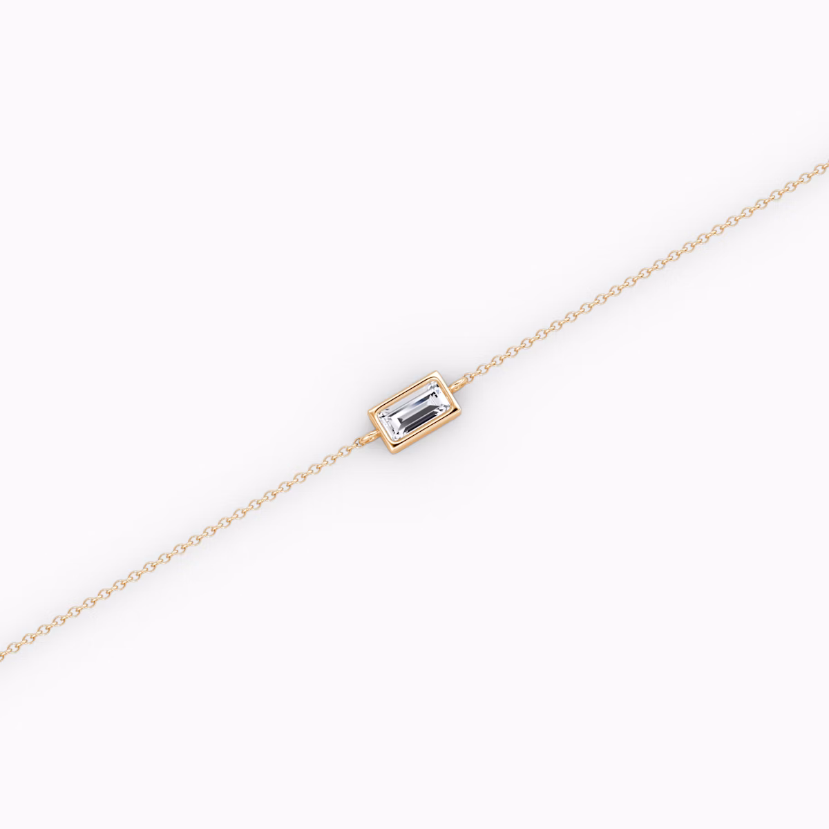 The Bezel Solitaire Bracelet combines vintage-inspired detail and modern appeal together for a look that’s timelessly elegant. A 14k solid gold bezel setting and matching chain outlines the distinctive form of eight different VRAI created diamond shapes in customizable sizes while drawing in and bouncing light in every direction.