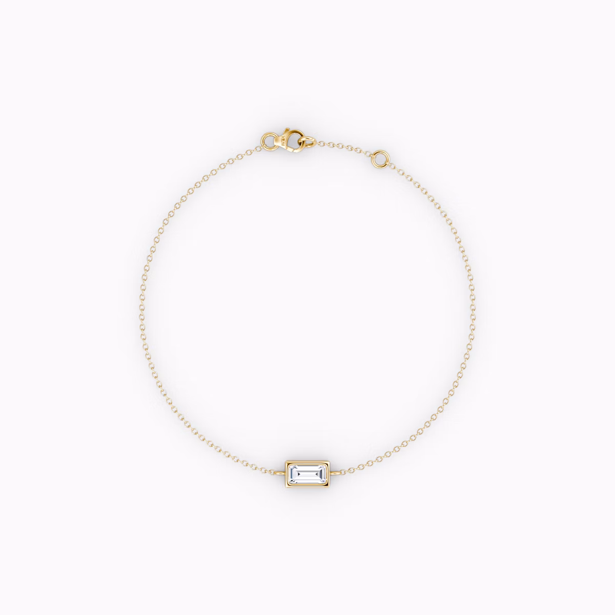 The Bezel Solitaire Bracelet combines vintage-inspired detail and modern appeal together for a look that’s timelessly elegant. A 14k solid gold bezel setting and matching chain outlines the distinctive form of eight different VRAI created diamond shapes in customizable sizes while drawing in and bouncing light in every direction.