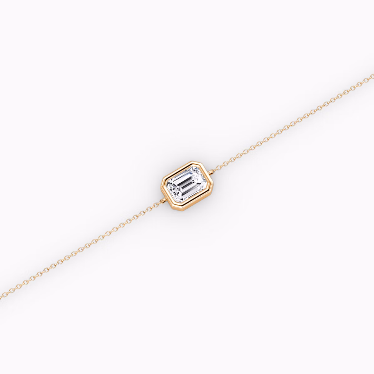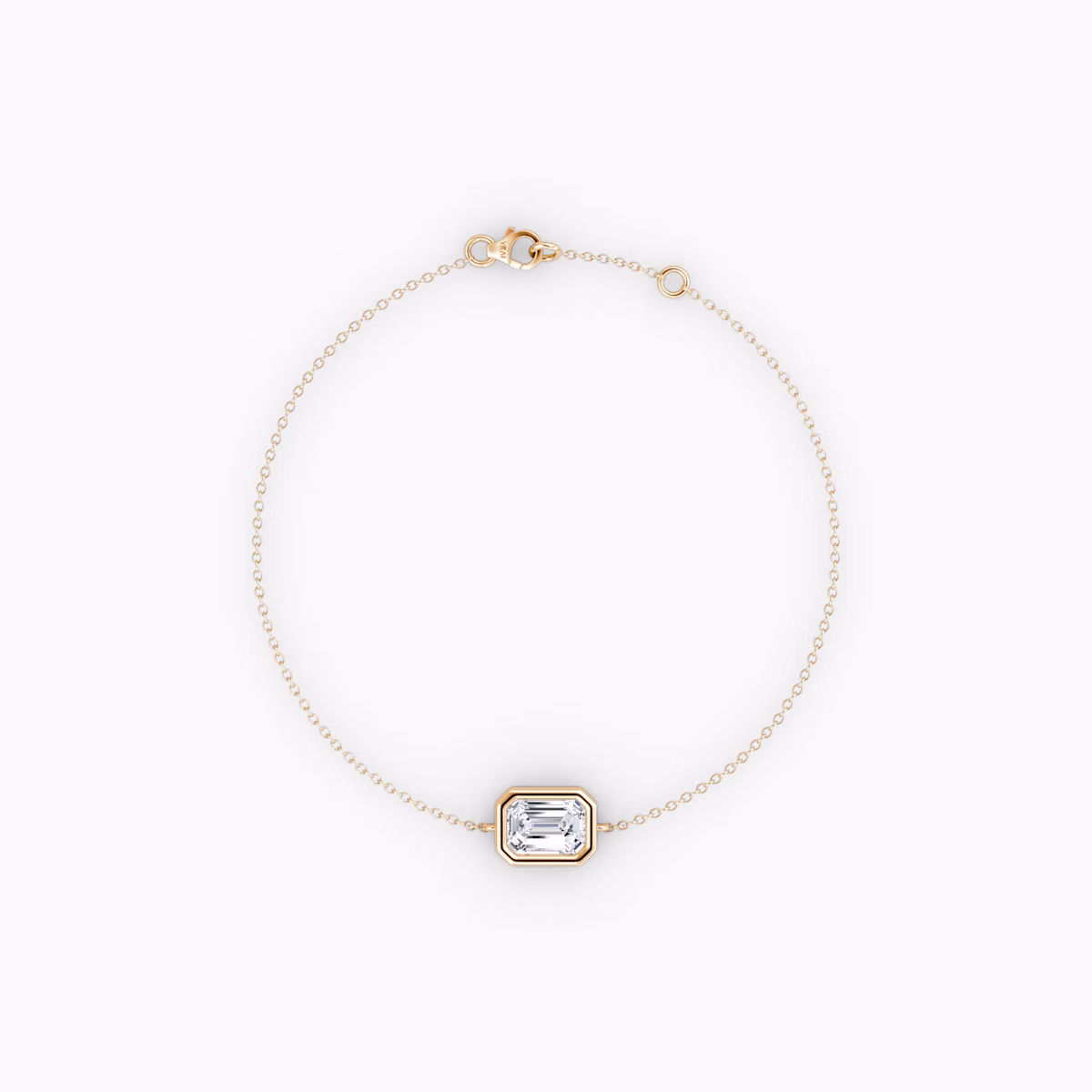 The Bezel Solitaire Bracelet combines vintage-inspired detail and modern appeal together for a look that’s timelessly elegant. A 14k solid gold bezel setting and matching chain outlines the distinctive form of eight different VRAI created diamond shapes in customizable sizes while drawing in and bouncing light in every direction.