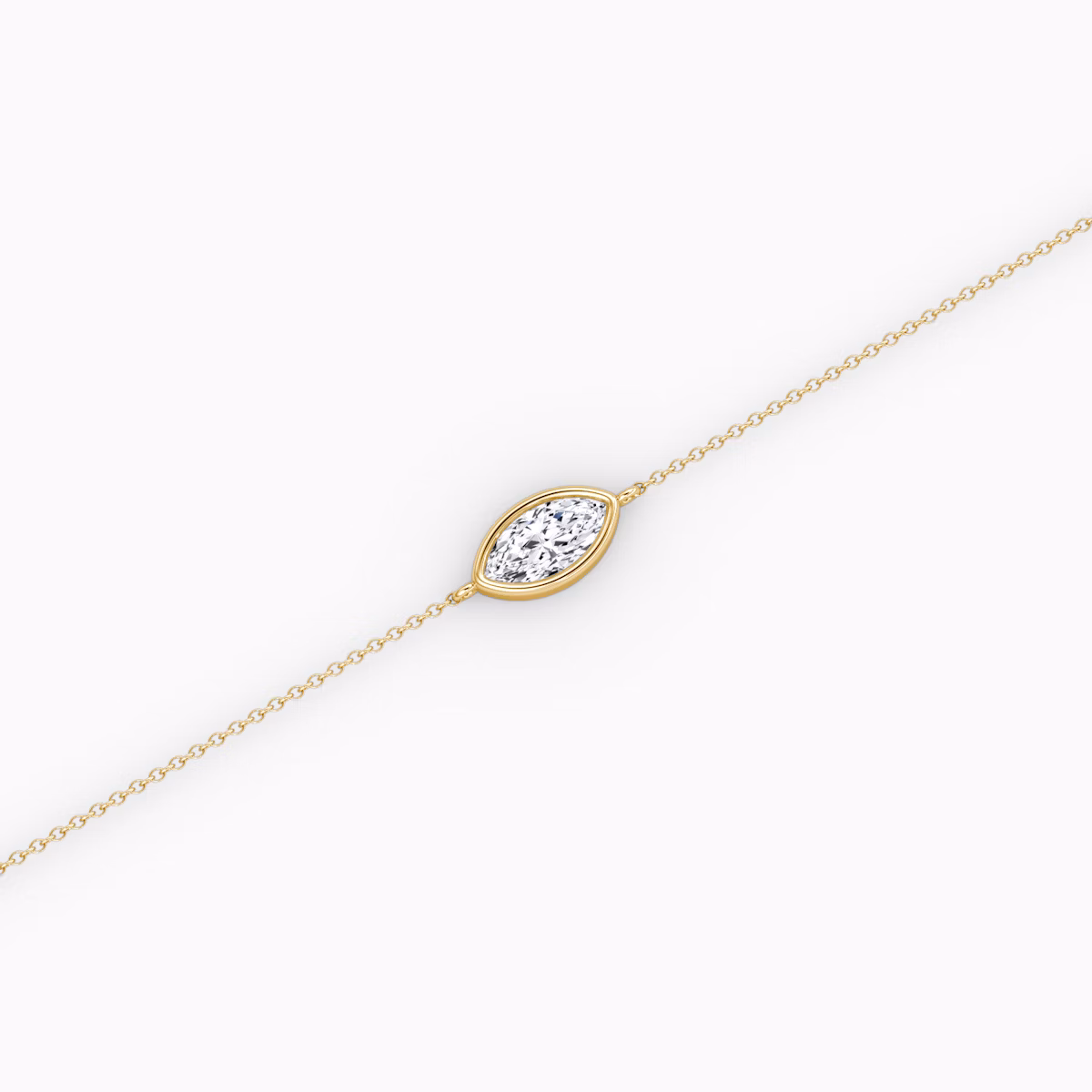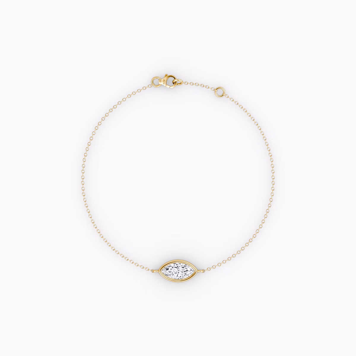 The Bezel Solitaire Bracelet combines vintage-inspired detail and modern appeal together for a look that’s timelessly elegant. A 14k solid gold bezel setting and matching chain outlines the distinctive form of eight different VRAI created diamond shapes in customizable sizes while drawing in and bouncing light in every direction.