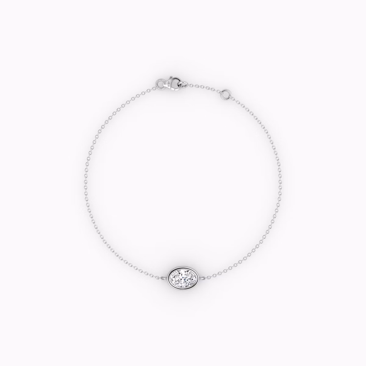 The Bezel Solitaire Bracelet combines vintage-inspired detail and modern appeal together for a look that’s timelessly elegant. A 14k solid gold bezel setting and matching chain outlines the distinctive form of eight different VRAI created diamond shapes in customizable sizes while drawing in and bouncing light in every direction.