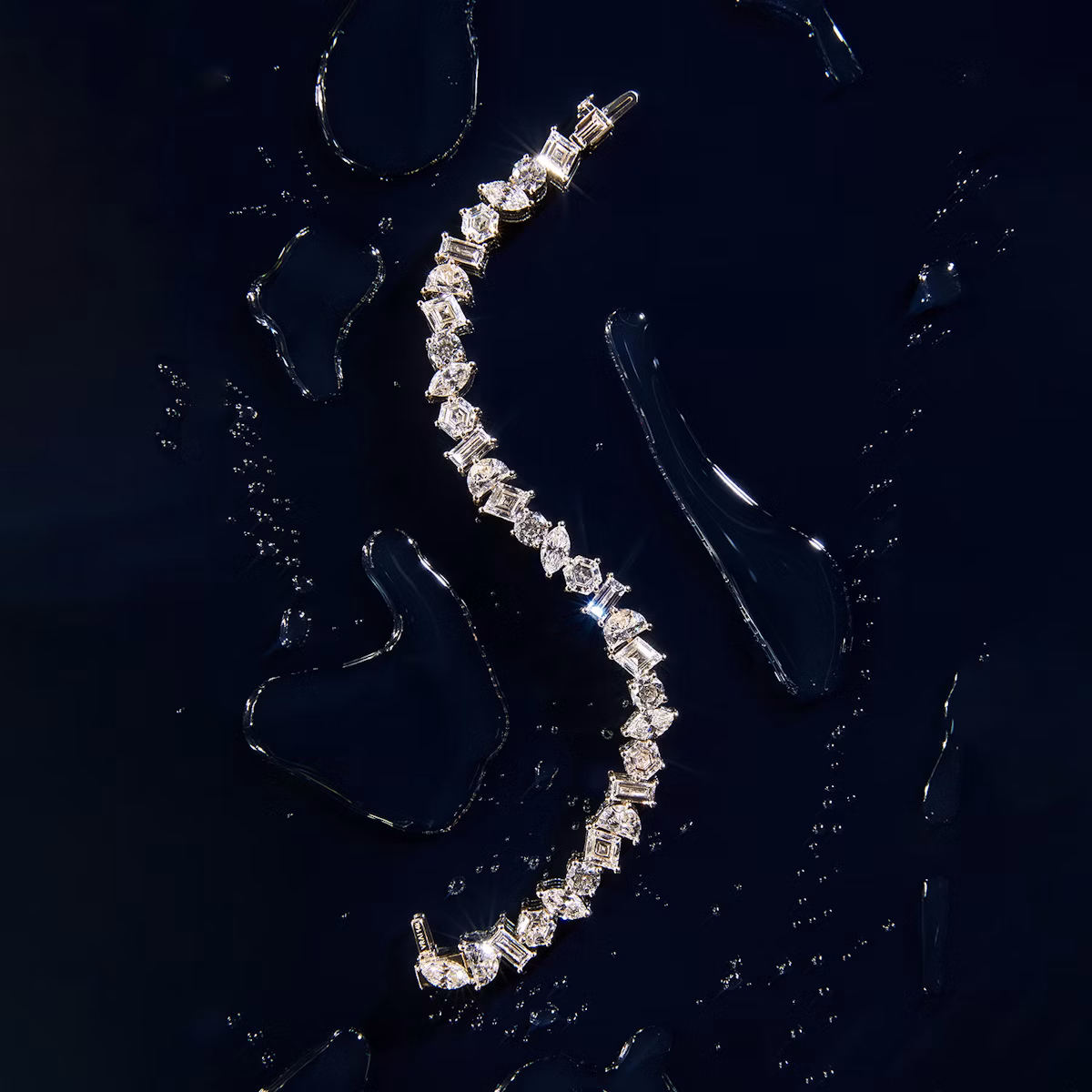 Our Illuminate bracelet brightens the path before you. The minimal 14k gold setting adds instant glow and shimmer to the over thirty VRAI created diamonds in six beautiful cuts. Step forward in confidence as this celebratory nineteen-carat piece reflects your personal radiance.