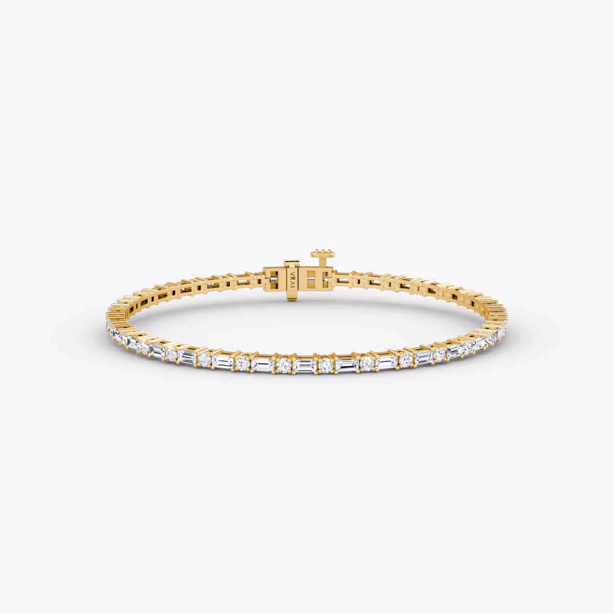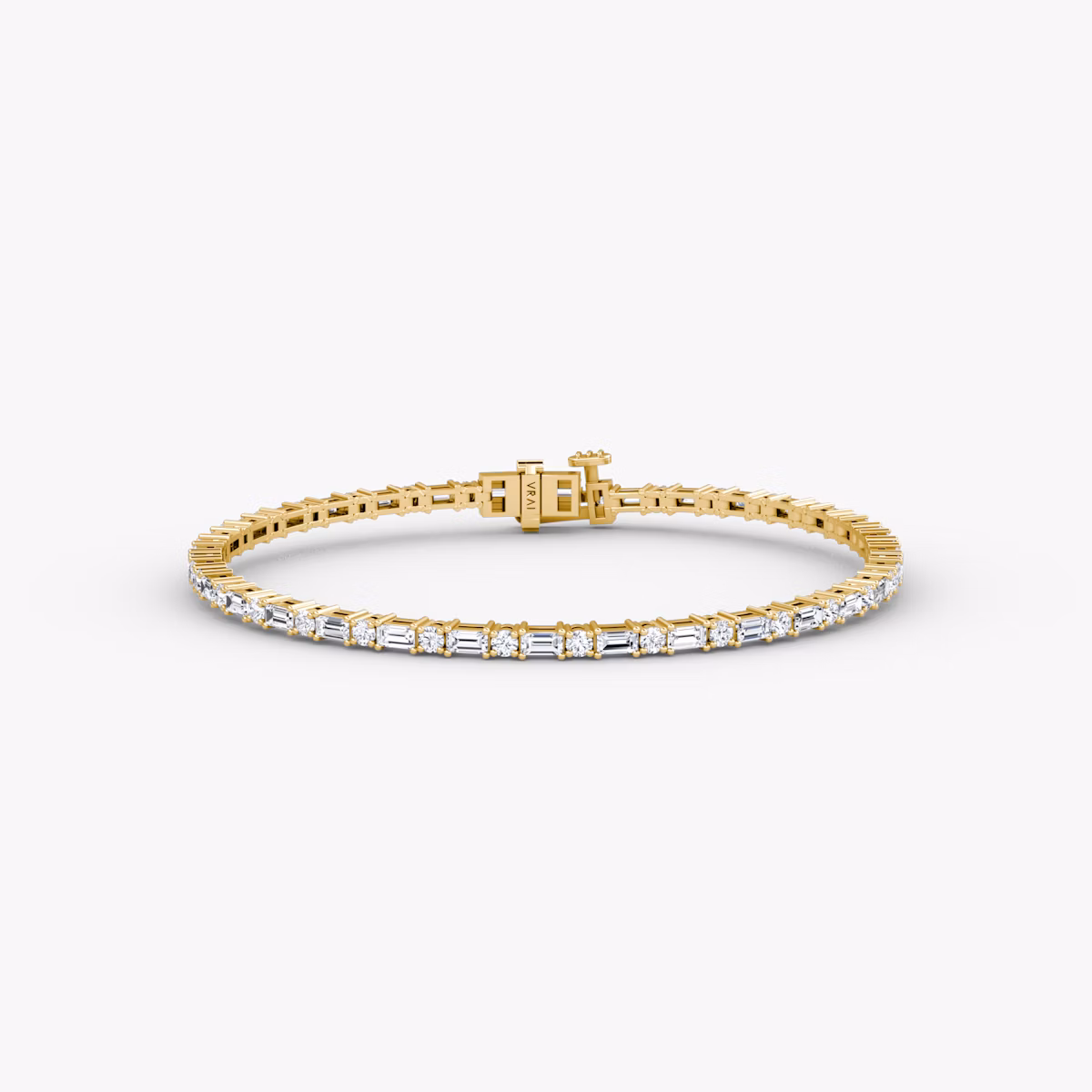 Mixed Shape Tennis Bracelet | Round Brilliant and Baguette | 14k | Yellow Gold | diamondSize: petite | chainLength: 6.5