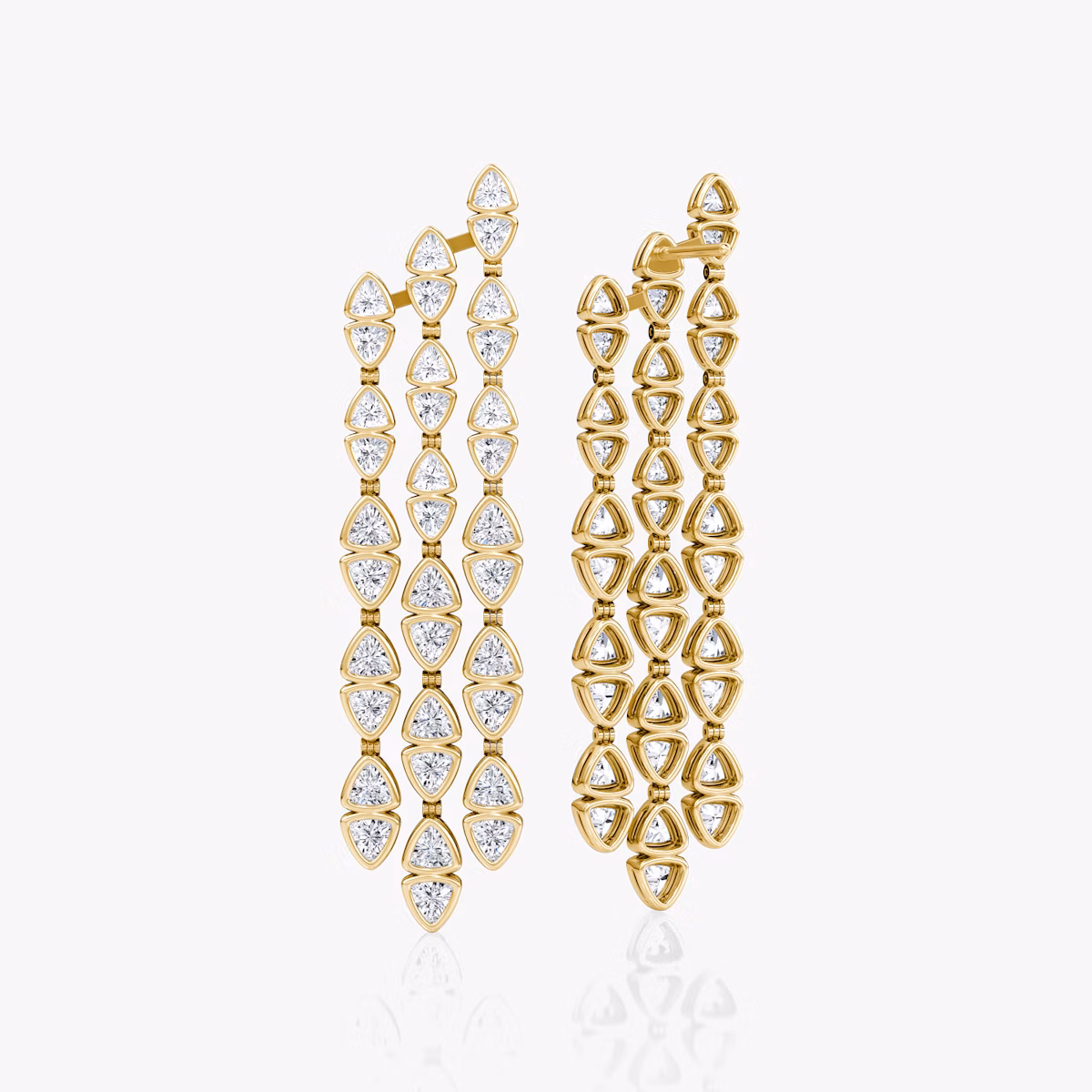 Equal parts graceful and unique, the Trillion Cascade Earring displays the coveted brilliance and triangular shape of a Trillion VRAI created diamond for a contemporary design that lights up any room. An array of Trillion VRAI created diamonds are handset along a 14k white gold or yellow gold setting to form three eye-catching geometric rows that dangle distinctly down from each ear lobe.