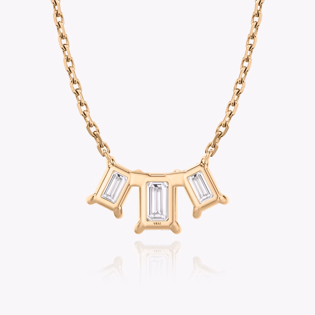 Our Arc Necklace symbolizes the meaning and moments to keep close to their heart. This celebratory design features an ensemble of VRAI created diamond shapes highlighted in a 14k solid gold setting and matching chain for spectacular shine.