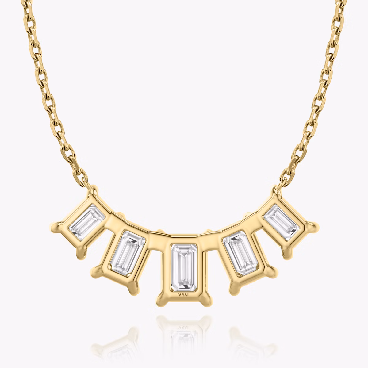 Our Arc Necklace symbolizes the meaning and moments to keep close to their heart. This celebratory design features an ensemble of VRAI created diamond shapes highlighted in a 14k solid gold setting and matching chain for spectacular shine.