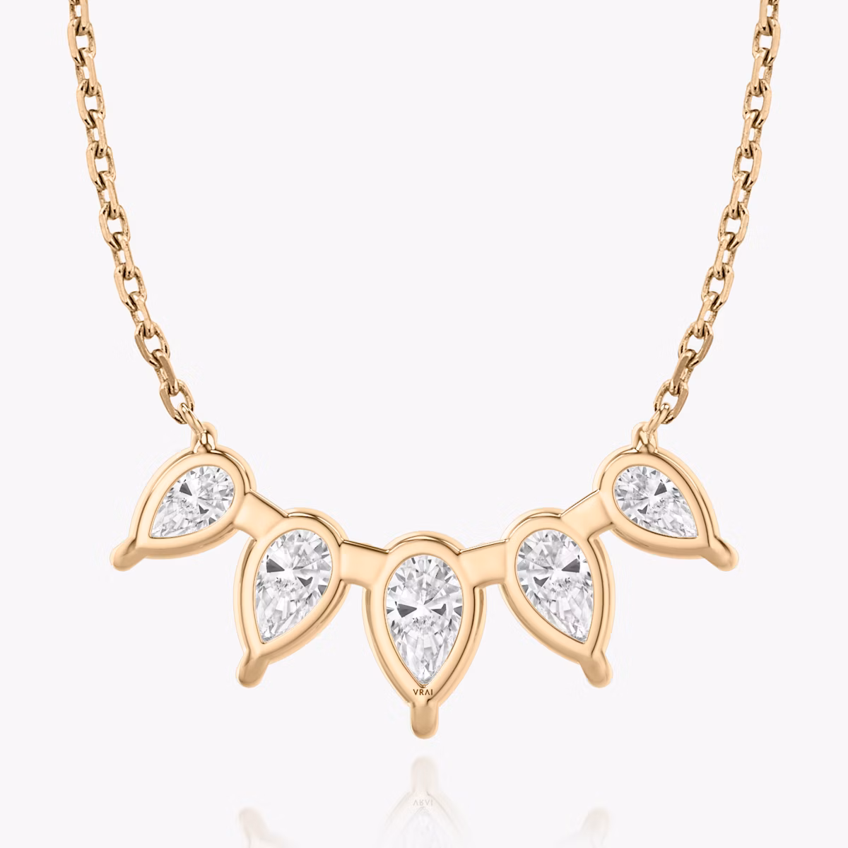Arc Necklace | Pear | 14k | Rose Gold | diamondCount: 5 | diamondSize: large | chainLength: 16-18