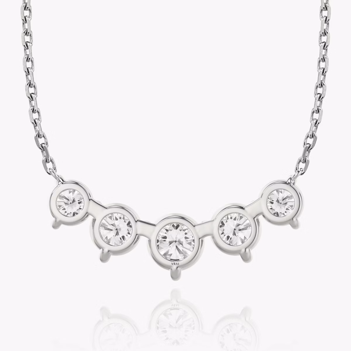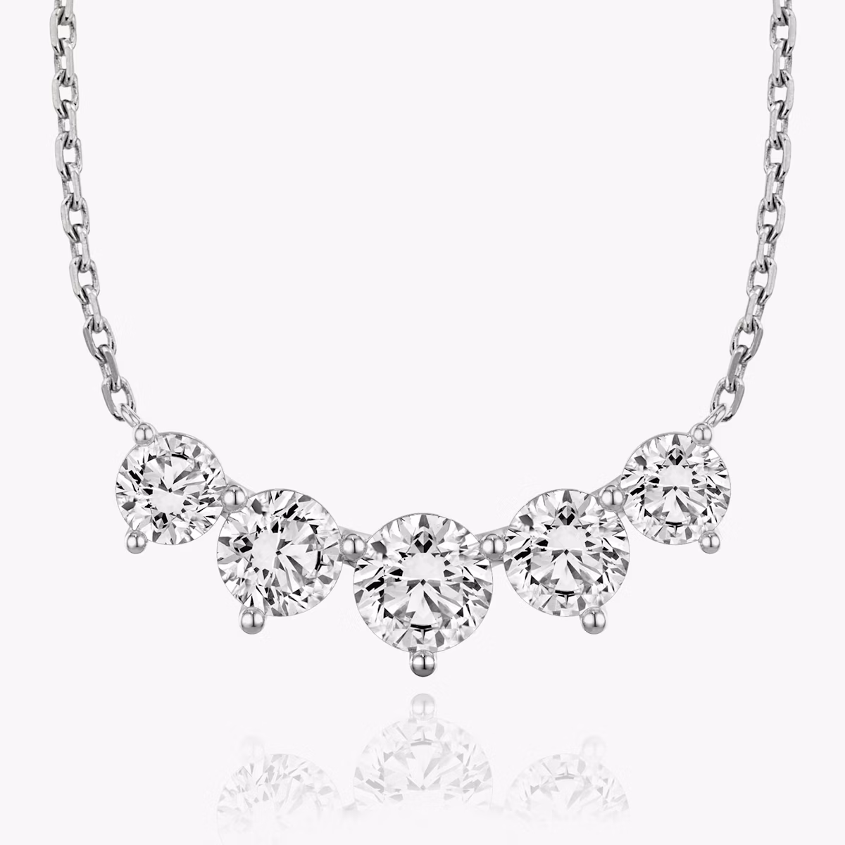 Arc Necklace | Round Brilliant | 14k | White Gold | diamondCount: 5 | diamondSize: large | chainLength: 16-18