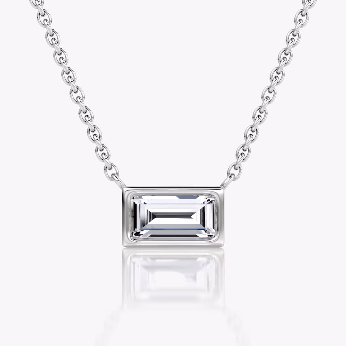 Bezel Solitaire Necklace | Baguette | 14k | White Gold | caratWeight: 0.50ct