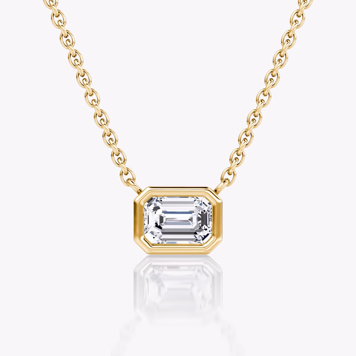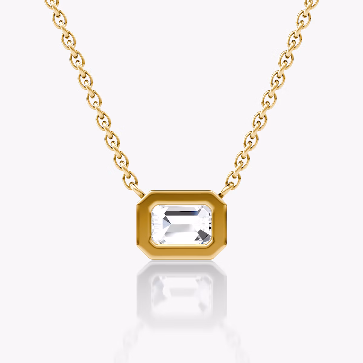 The Bezel Solitaire Necklace combines vintage-inspired detail and modern appeal together for a look that’s timelessly elegant. A 14k solid gold bezel setting and matching chain outlines the distinctive form of eight different VRAI created diamond shapes in customizable sizes while drawing in and bouncing light in every direction.