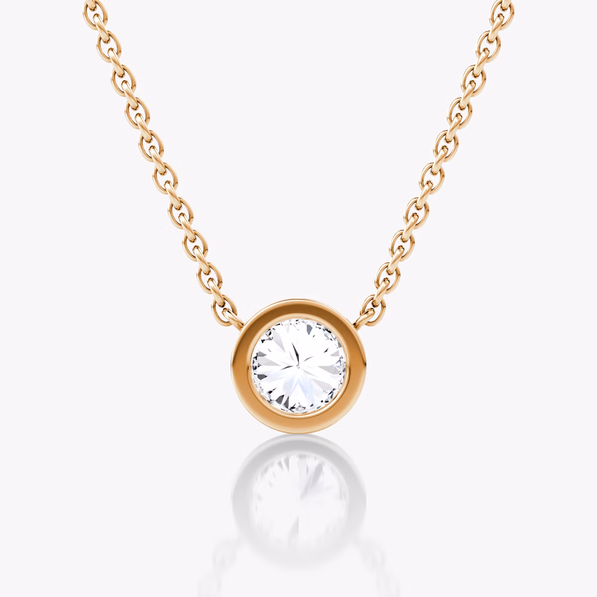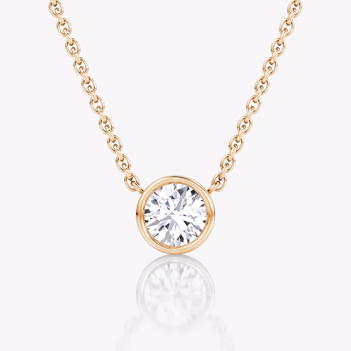 The Bezel Solitaire Necklace combines vintage-inspired detail and modern appeal together for a look that’s timelessly elegant. A 14k solid gold bezel setting and matching chain outlines the distinctive form of eight different VRAI created diamond shapes in customizable sizes while drawing in and bouncing light in every direction.