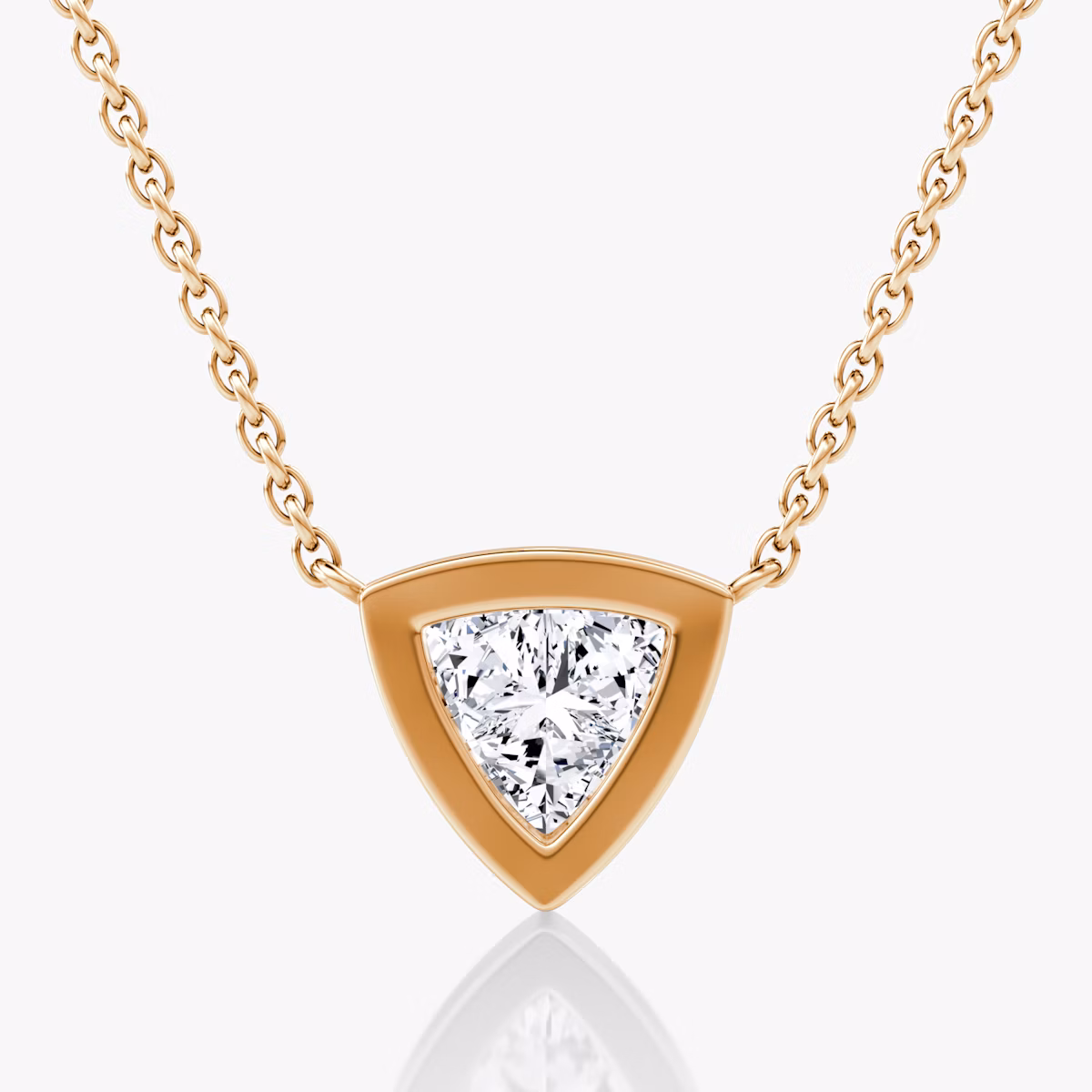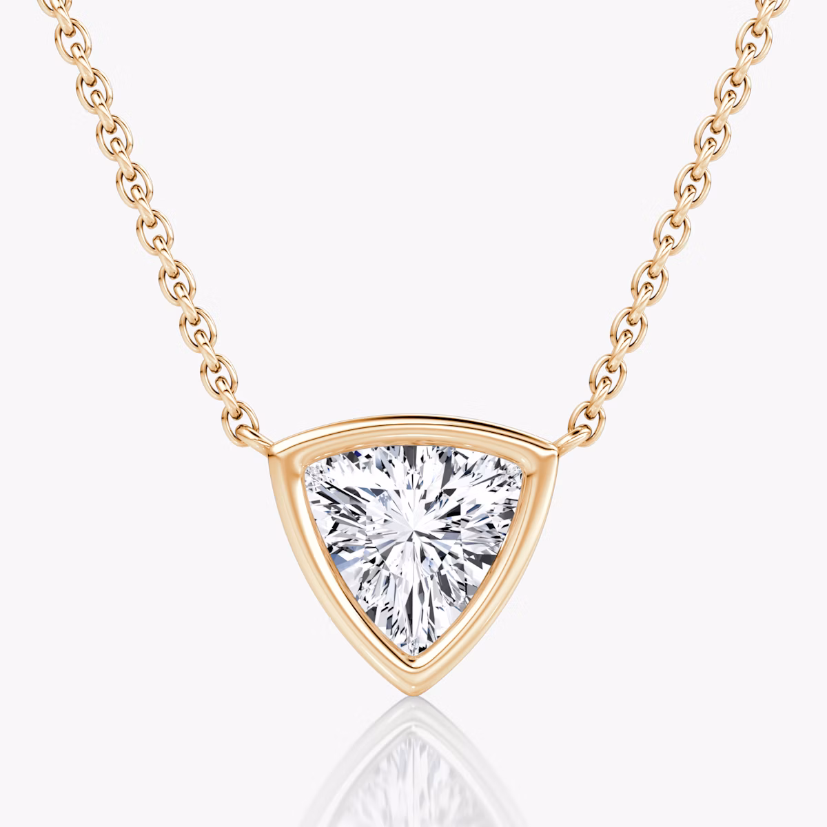 The Bezel Solitaire Necklace combines vintage-inspired detail and modern appeal together for a look that’s timelessly elegant. A 14k solid gold bezel setting and matching chain outlines the distinctive form of eight different VRAI created diamond shapes in customizable sizes while drawing in and bouncing light in every direction.