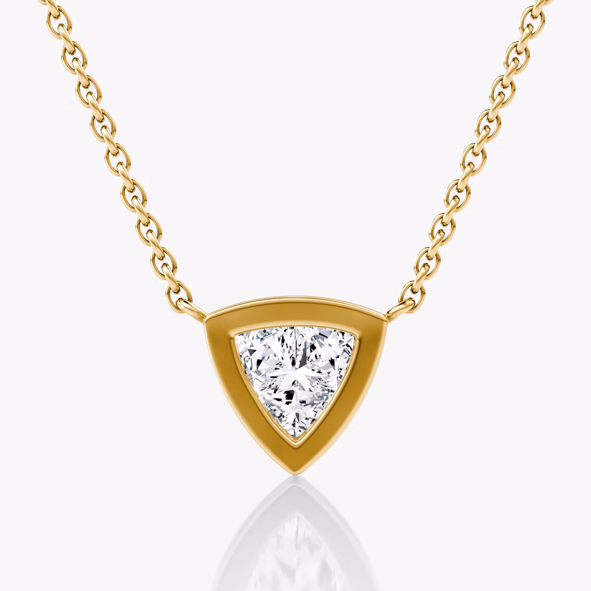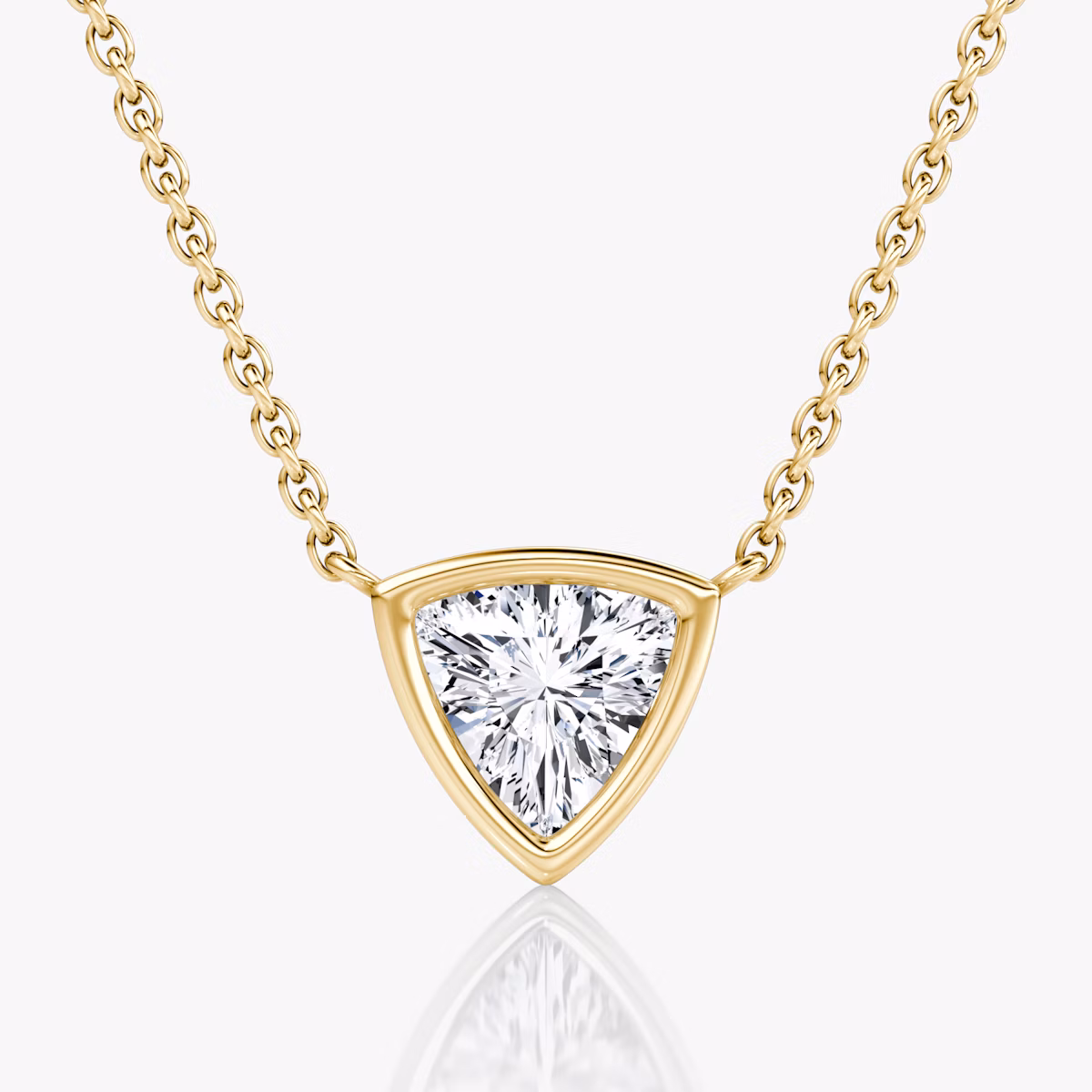The Bezel Solitaire Necklace combines vintage-inspired detail and modern appeal together for a look that’s timelessly elegant. A 14k solid gold bezel setting and matching chain outlines the distinctive form of eight different VRAI created diamond shapes in customizable sizes while drawing in and bouncing light in every direction.